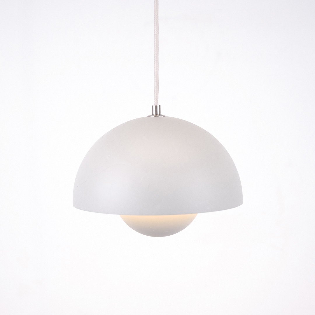 Flowerpot Pendelleuchte, Modell VP1, entworfen von Verner Panton im Jahr 1968 und hier produziert von &Tradition. Die Lampe besteht aus grau lackiertem Metall mit dem charakteristischen Doppelschirmdesign.