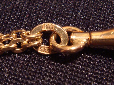Ankerkette zu lommeur.Længde: 77,5 cm Gold 14k 585 Mauer. 19,8 gram.Stemplet HJ (Hans Jensen & Co. Eftf. Aarhus)(verkauft)