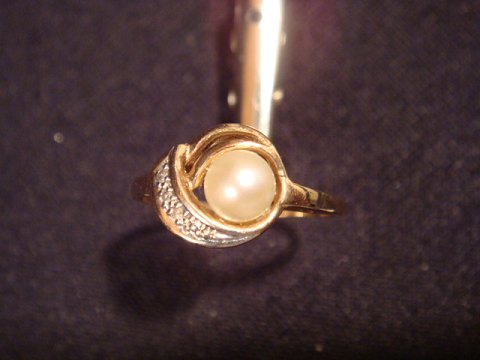 Ring mit Perle und Diamanten.