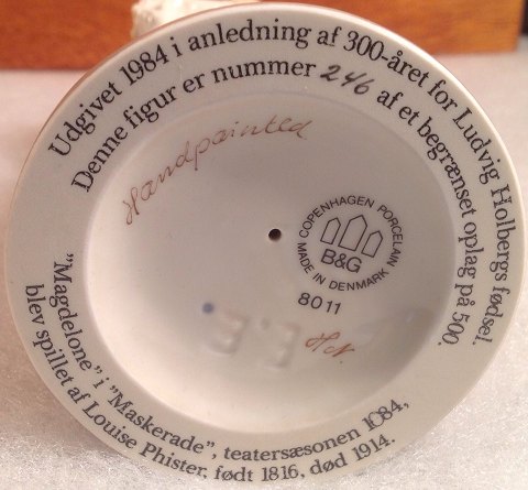 Jede Figur in Holberg-Kollektion kommt mit einem Zertifikat in einer festen Box aus poliertem Mahagoni nummeriert. , die mit dunkelblauem Samt ausgekleidet ist. B & G no 8011