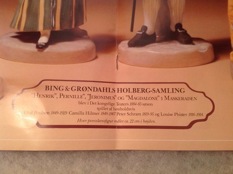 Nie zuvor hat es gemacht worden, dass die dänischen exklusiven Sammler-Serie. für alte Modelle Bing & Gröndahl erstellt vier einzigartigen Figuren von Akteuren aus dem Theatre Royal in ihren Rollen als "Henry", "Pernille", "Jerome" und "Lone Magda" in der Komödie "Maskerade". Mit der größten Genauigkeit reproduziert Spieler und ihre Kostüme so wie sie hätten auf der 200-Jahr-Jubiläums-Show im Jahr 1884 im Nationaltheater zu sehen.