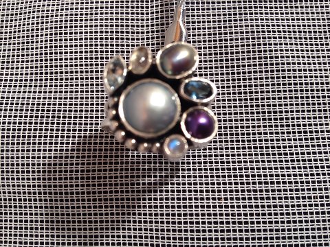 Mit 2 Pearl, Moonstone, blauer Turmalin, Citrin Aqumarinog.