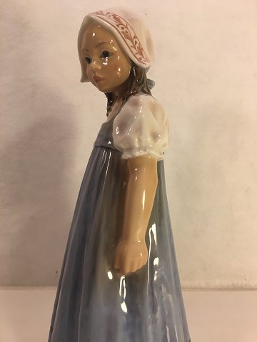 Dahl Jensen Figur. Mädchen in einem Kleid mit gemustertem Muster und Taske Hanne.