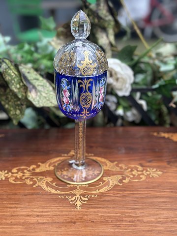 Böhmische Kristallkelche mit Deckel aus Überlaufglas, handgeschliffenem Bleikristall, Emaille und Gold, aus der Zeit des Rokoko. Höhe 18 cm