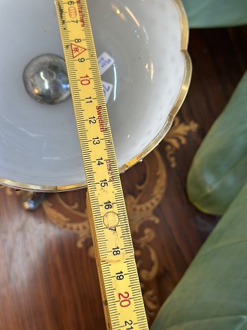 Vintage-Schale aus den 1800er-1900er Jahren, die Schale ist aus Opalglas (milchig weißes Glas) mit handgemalten goldenen Punkten und Goldrand, der Fuß ist versilbert mit dekorativen Jugendstil- und Barock-inspirierten Details, entworfenes Opalglas aus den späten 1800er Jahren