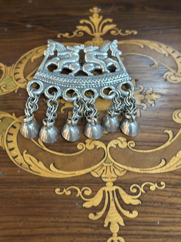 Vintage-Schmuck von Kalevala Krou, einem der bekanntesten Schmuckhersteller Finnlands, besticht durch seine Robustheit. Die Brosche ist von Amuletten inspiriert, die Glück bringen und vor bösen Geistern schützen sollten. Sie ist wunderschön und in gutem Zustand.