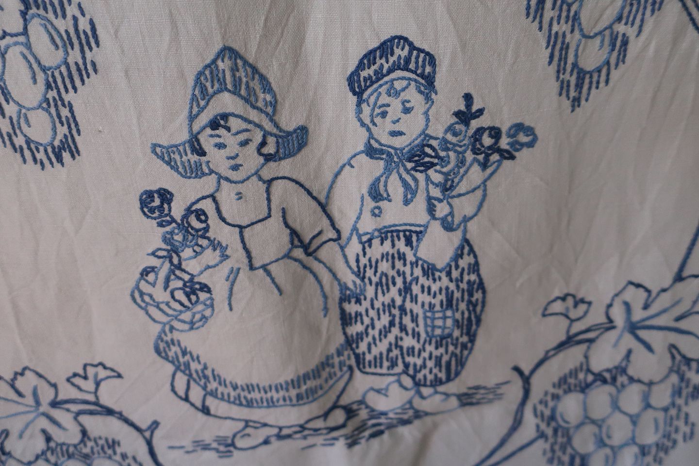Schönes altes Paradestück mit blauer Stickerei - handgemacht