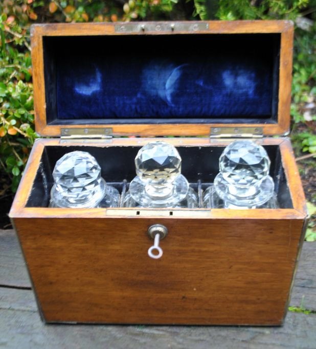 Englischer Tantalus mit drei Dekantern, 19. Jahrhundert.