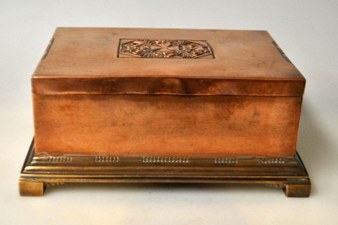 DFDS-Zigarrenkiste aus Kupfer und Messing, Innenausstattung mit Holz. 1916. Johan ...