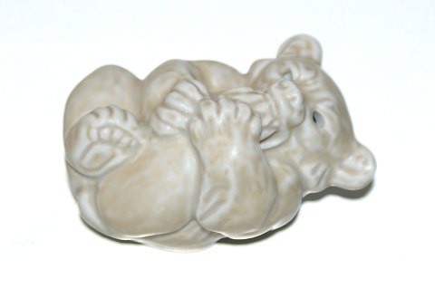 Royal Copenhagen Figur, Isbjørn liggende på ryggen (Baby bjørn)Design: Knud Kyhn