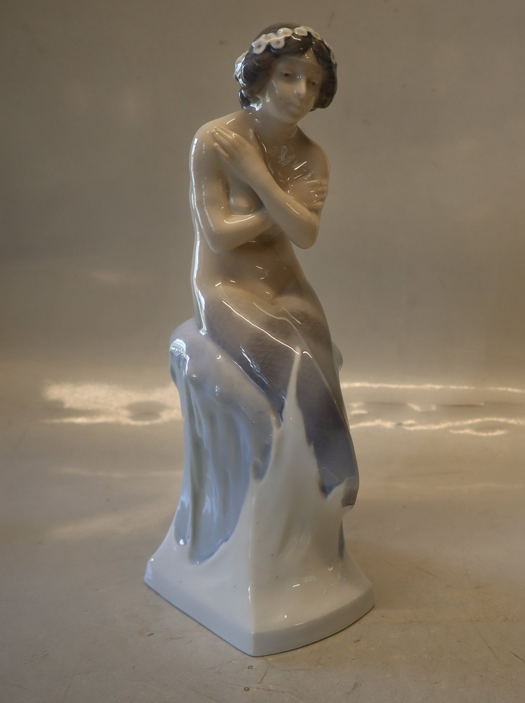Kgl. figur fra Royal Copenhagen 1210 Kgl. Havfrue på isknold Chr. T pre-1910 26 x 10 cm I hel og fin standProduceret før 1923 Fra H.C. Andersens eventyr "Den lille Havfrue"
