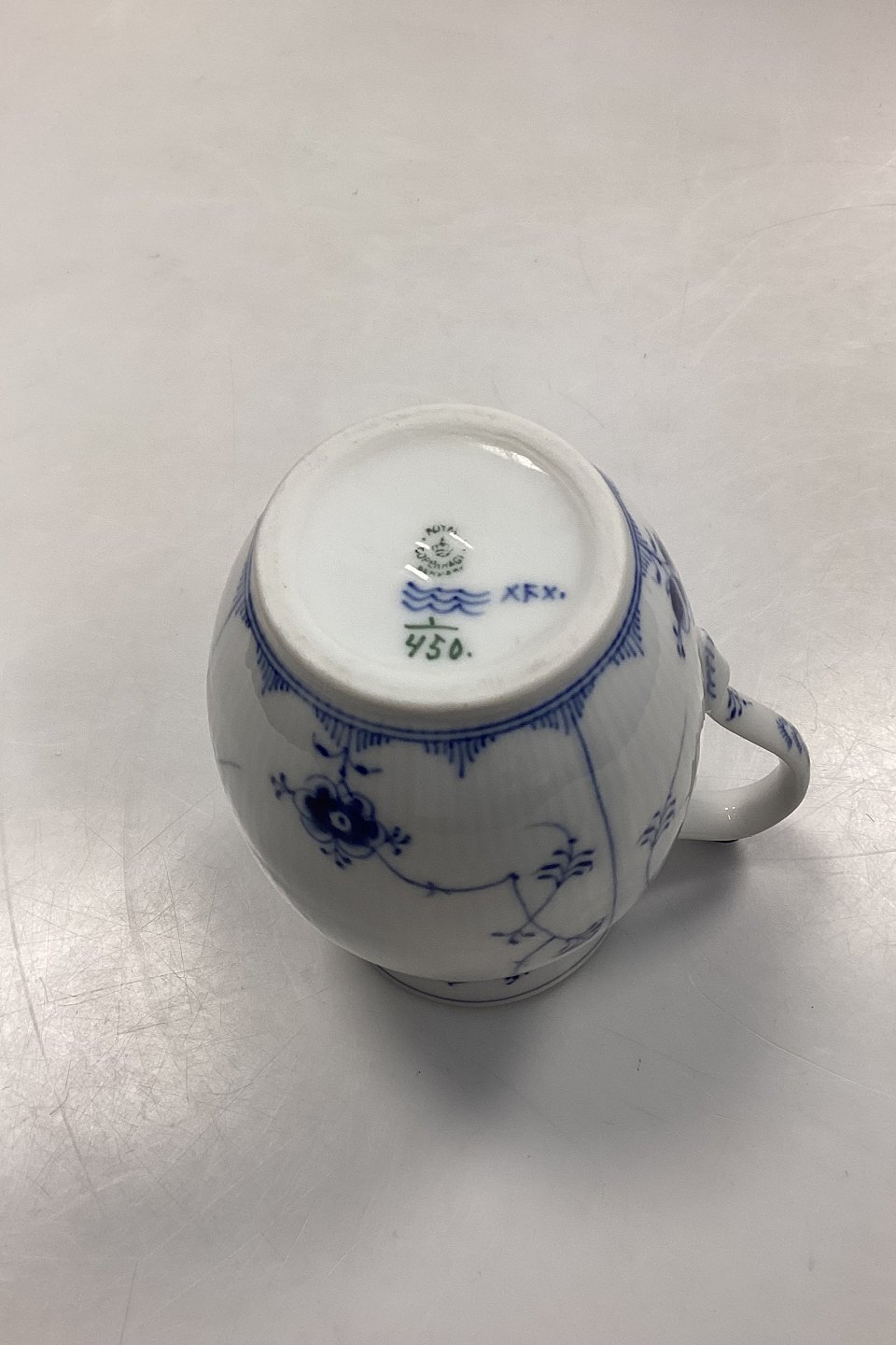 Royal Copenhagen Musselmalet Riflet Mælkekande No. 450. Måler 15,5 cm / 6,10 in. og er i god stand. 2. Sortering.Lager: 1