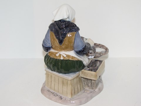 Stor Bing & Grøndahl figur, fiskerkone med forskellige fisk.Fabriksmærket viser, at denne er produceret mellem 1962 og 1970.