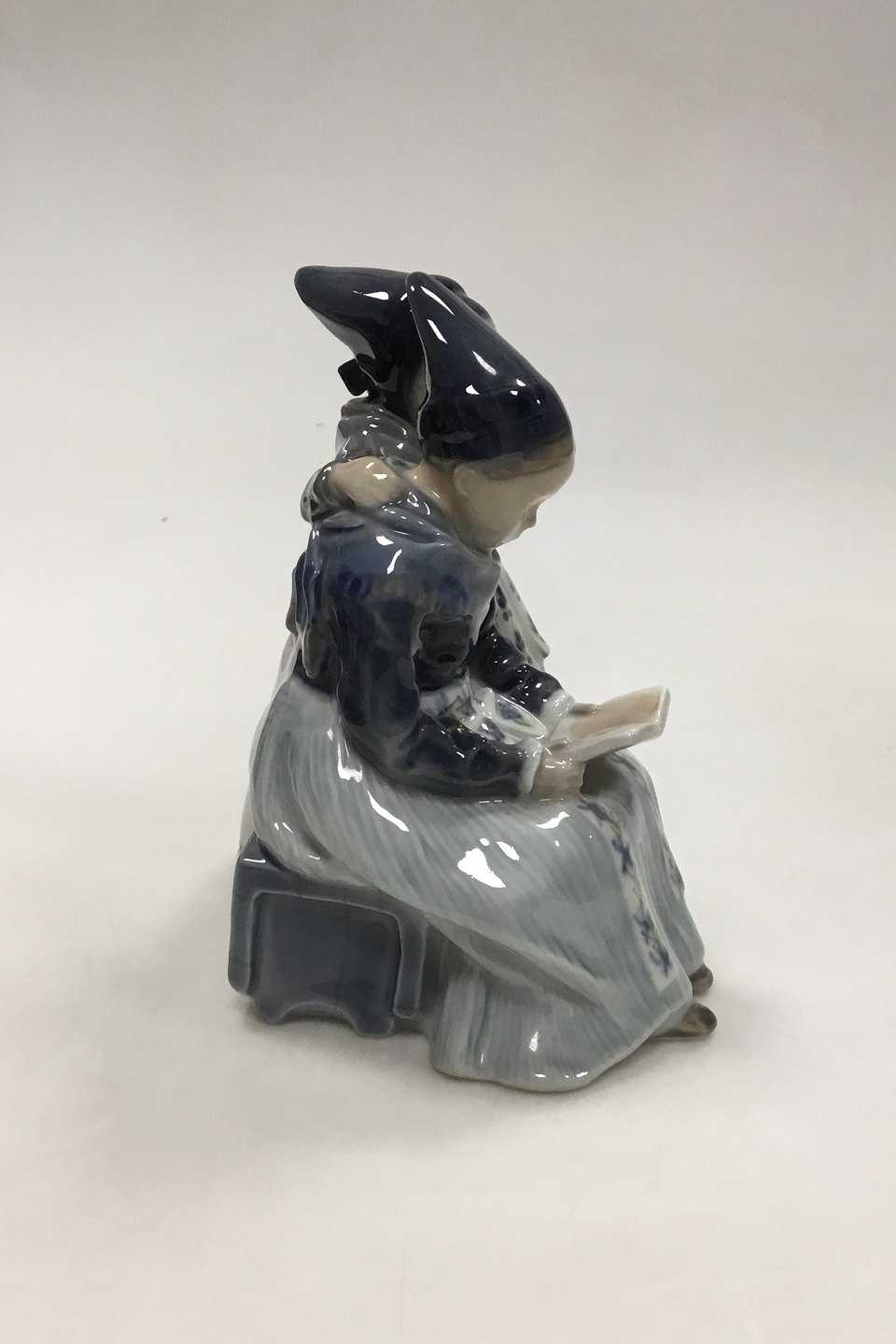 Royal Copenhagen Figur Læsende Amagerpiger No. 1395. Måler 17 cm (6 11/16 in.) og er i god stand. Designet af Lotte BenterLager: 1