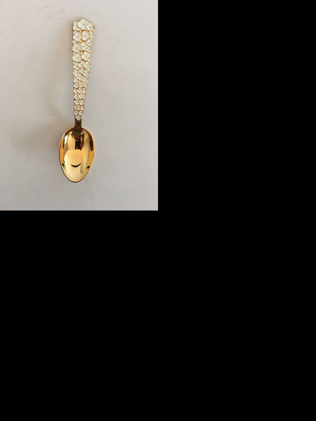 Anton Michelsen Juleske 1956 Forgyldt Sterling Sølv med EmaljeJørgen Michelsen som var 4. generation i firmaet overtog i 1957 firmaet og driften deraf. Året forinden valgte han dekorationen, Julebegoniaen. Skaftet er tæt fyldt med hvide blomster i aftagende størrelse. Blomsterne er udført i lav relief-emalje(émail translucide sur)