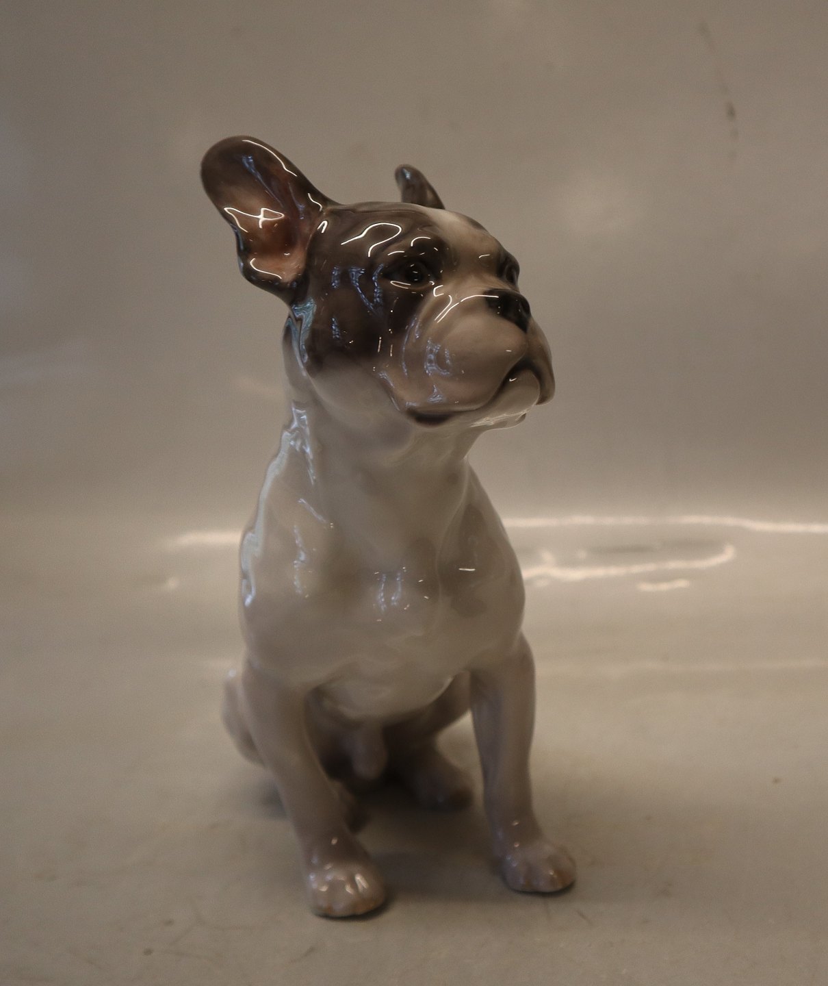 Kgl. hundefigur 1466 Kgl. Fransk Bulldog siddende 20 x 18 cm LJ 1913 Broget 1452 fra Royal Copenhagen I hel og fin stand Händler