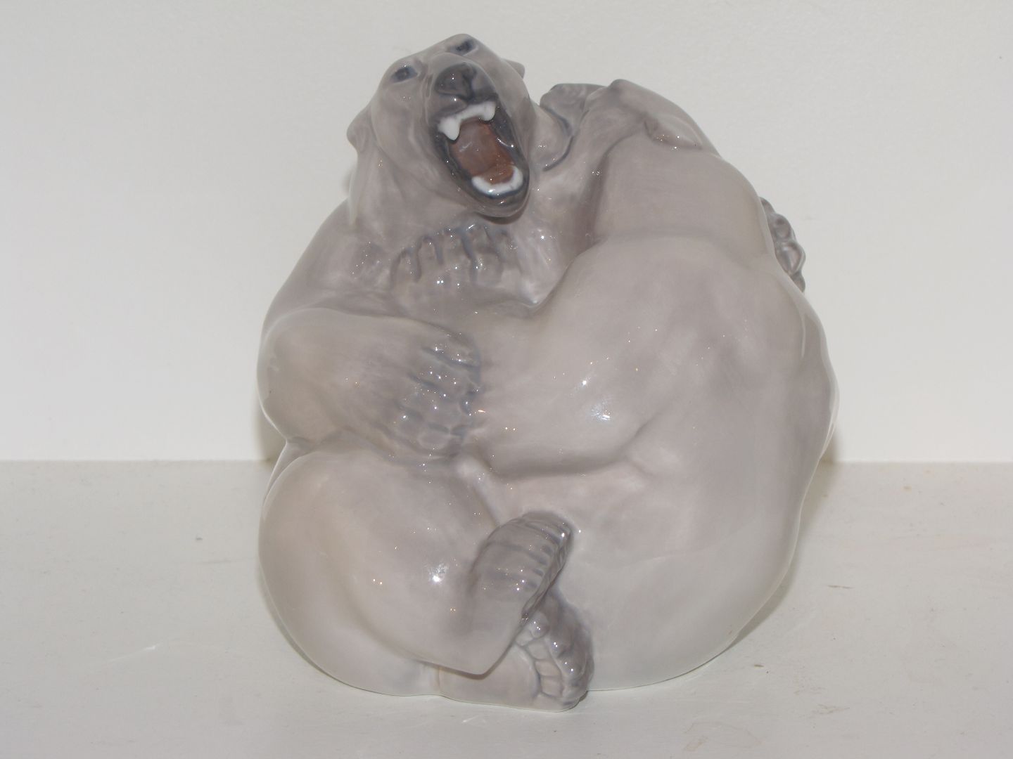 Royal Copenhagen Figur, to kæmpende isbjørne.Af fabriksmærket ses det, at denne er produceret i mellem 1975 og 1979.