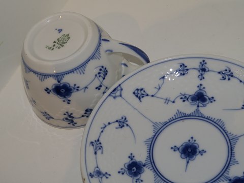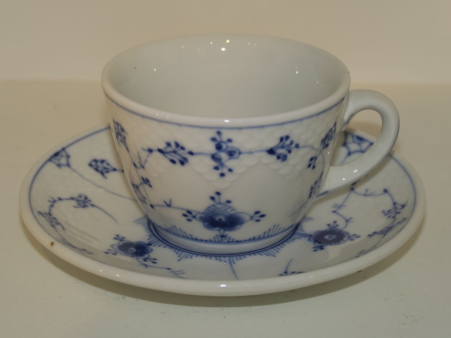 Bing & Grøndahl Blåmalet Hotelporcelæn / jernporcelæn (musselmalet), stor kaffekop med underkop.Dekorationsnummer 1023.