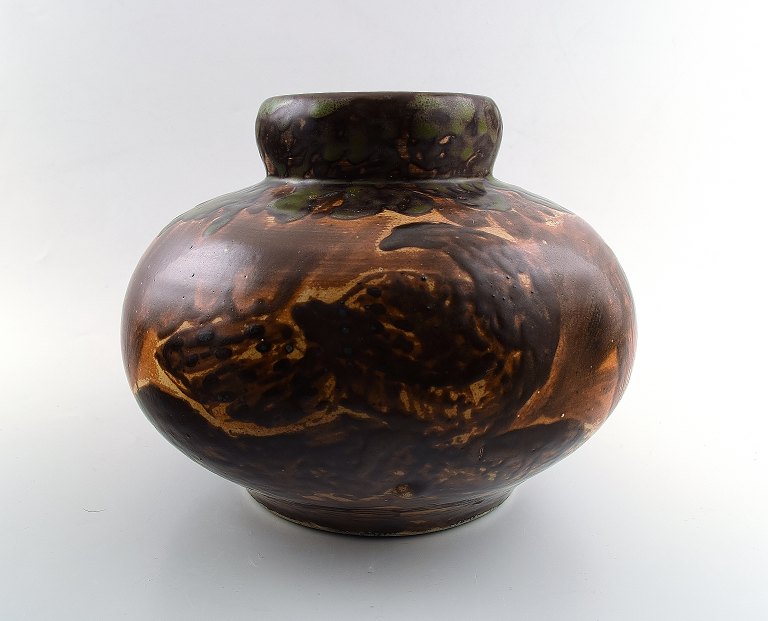 Unika Knud Kyhn for B&G, Bing & Grøndahl stor keramikvase dekoreret med fugle.