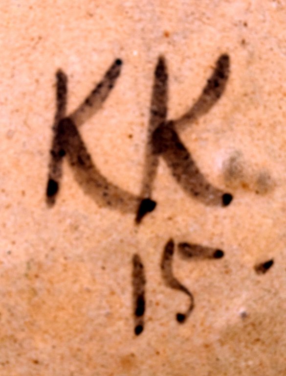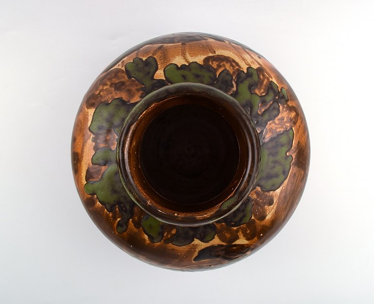 Unika Knud Kyhn for B&G, Bing & Grøndahl stor keramikvase dekoreret med fugle.Dateret 1915.