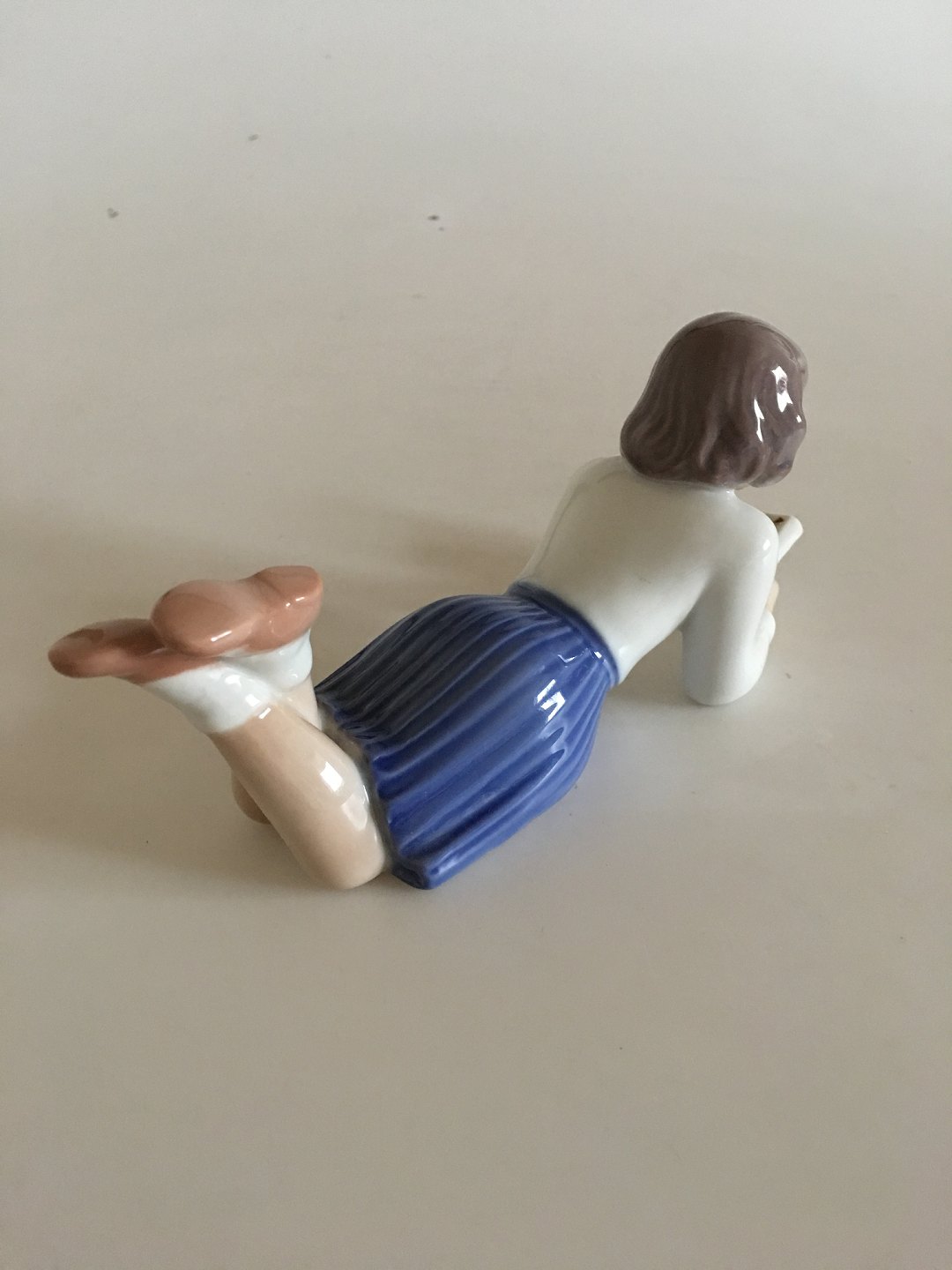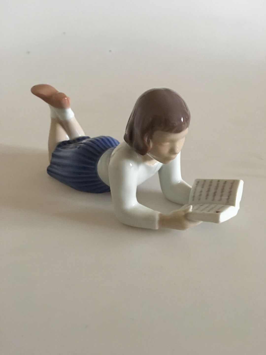 Bing og Grøndahl Figur - Merete No. 2304. Pige der læser liggende.Måler 20 cm (7 7/8 in.)