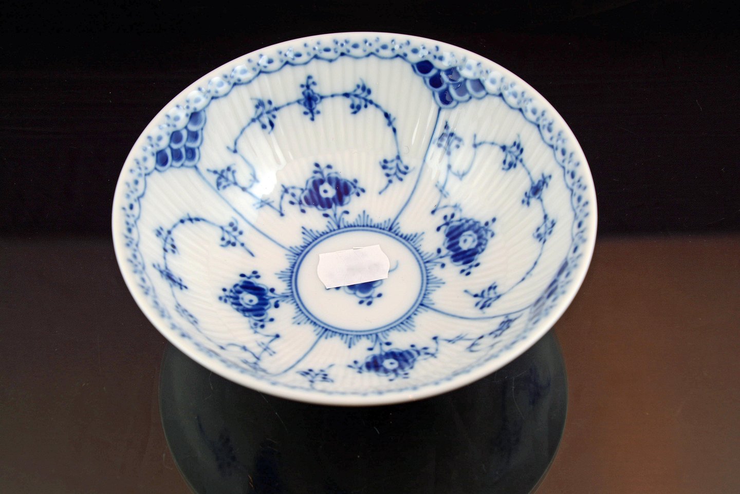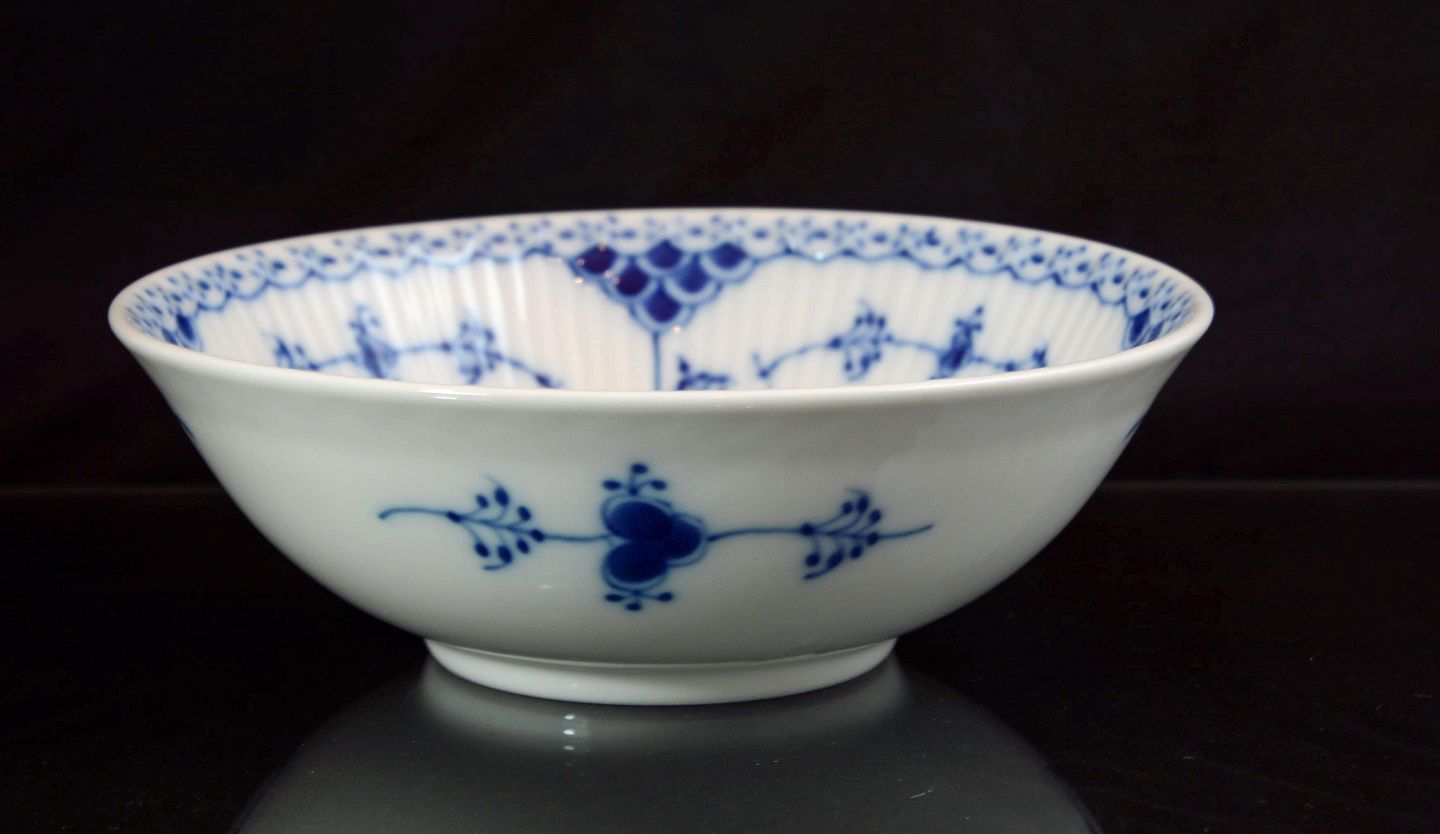 Kongelig skål (nr.1/624) i musselmalet halvblonde fra Royal Copenhagen. Intakt. 1. sort.Vi har 1 stk. 2 sortering til 550,-