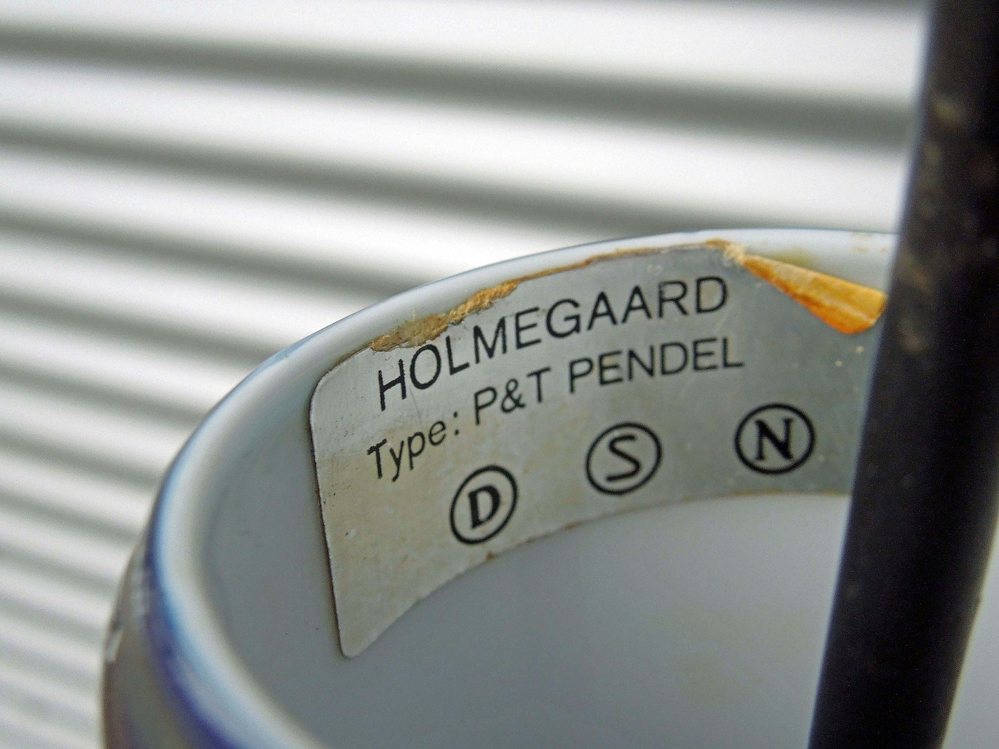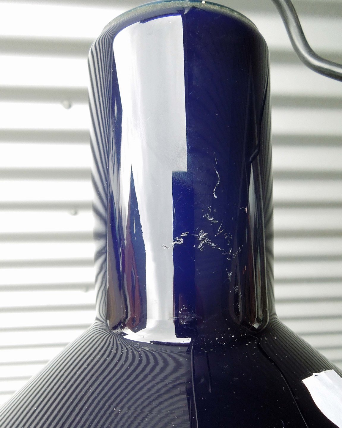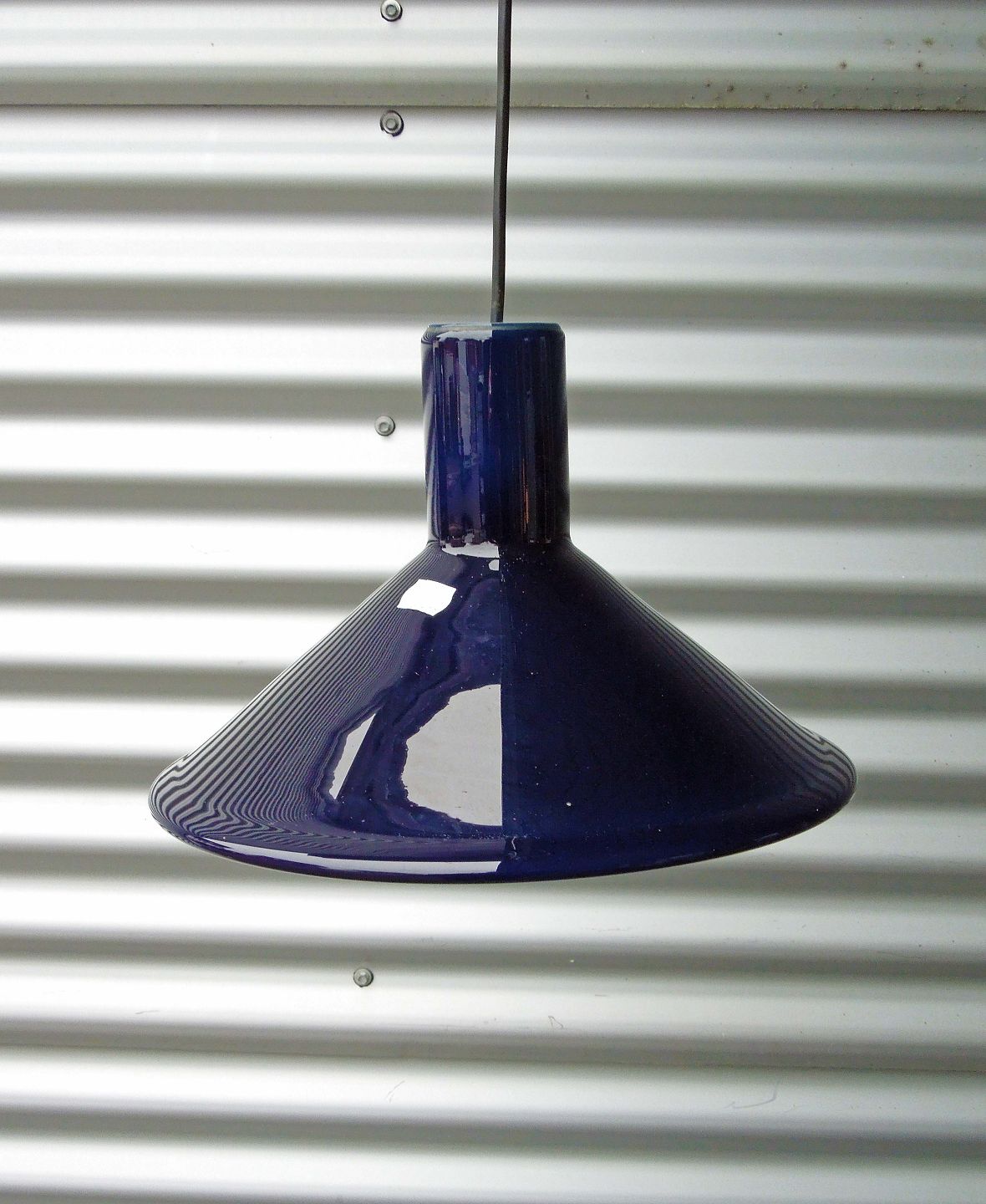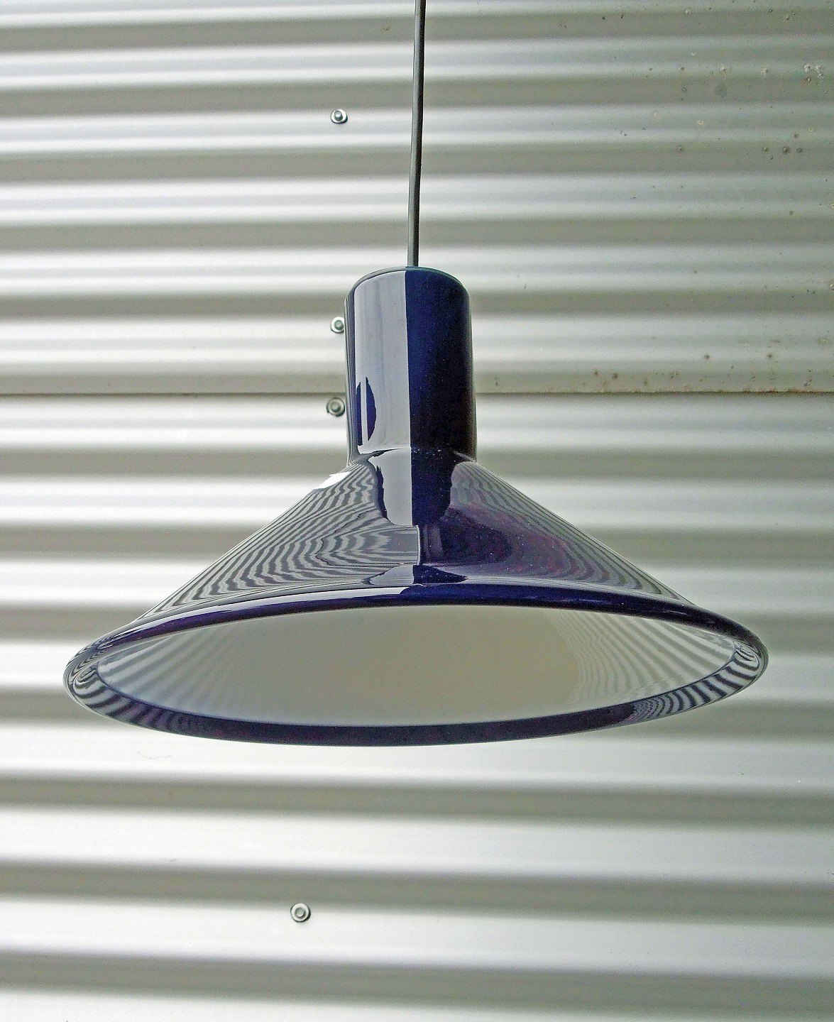 Holmegaard P&T pendel med mørkeblåt overfangsglas.Lampen er den store model.