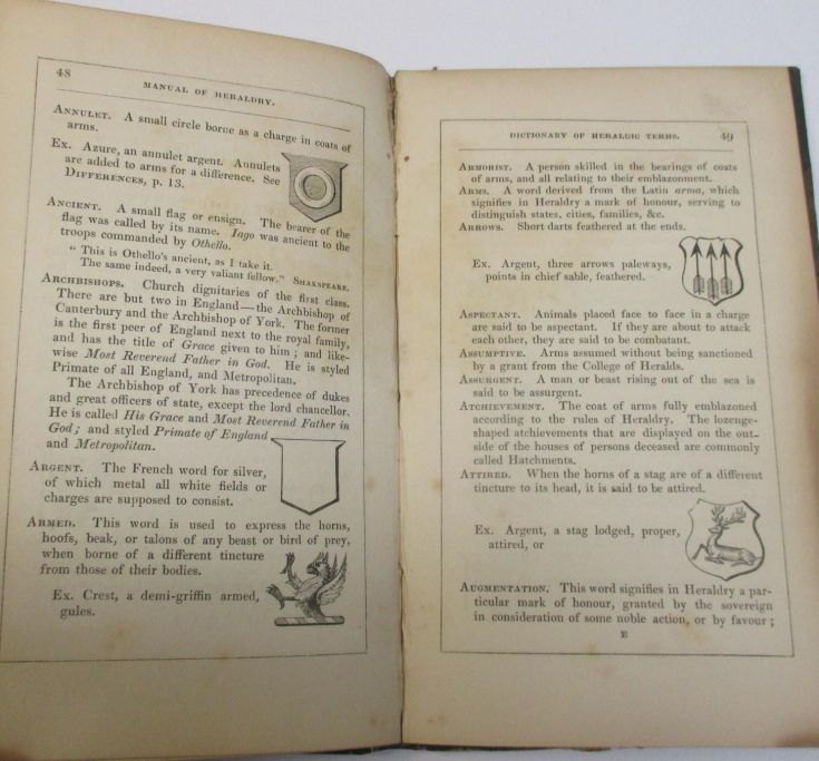 Das Handbuch der Heraldik. London, 1846. Gedrückt für Jeremiah How. Mit 400 Holzschnitte. 17 x 10,5 cm.Bestellnummer: 14549