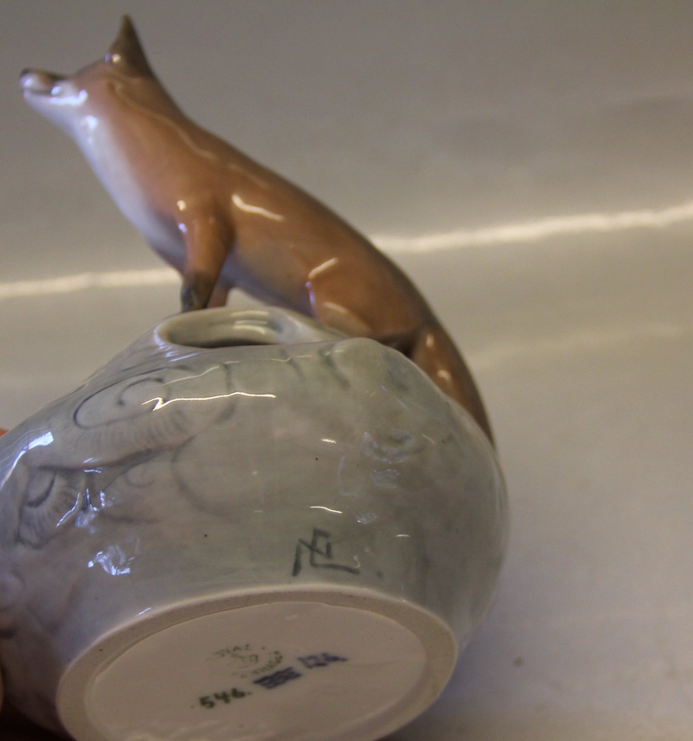 0546 Kgl. Ræv på hule Erik Nielsen 1904 16 x 10 cm fra Royal Copenhagen I hel og fin stand Rævegrav - Fox - MikkelrøvProduceret mellem 1904 og 1923