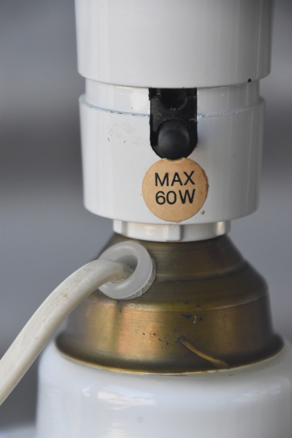 Holmegaard bordlampe i hvid opalglas og med messing fatningLampen måler H.: 354cm Ø.: 14,5cm