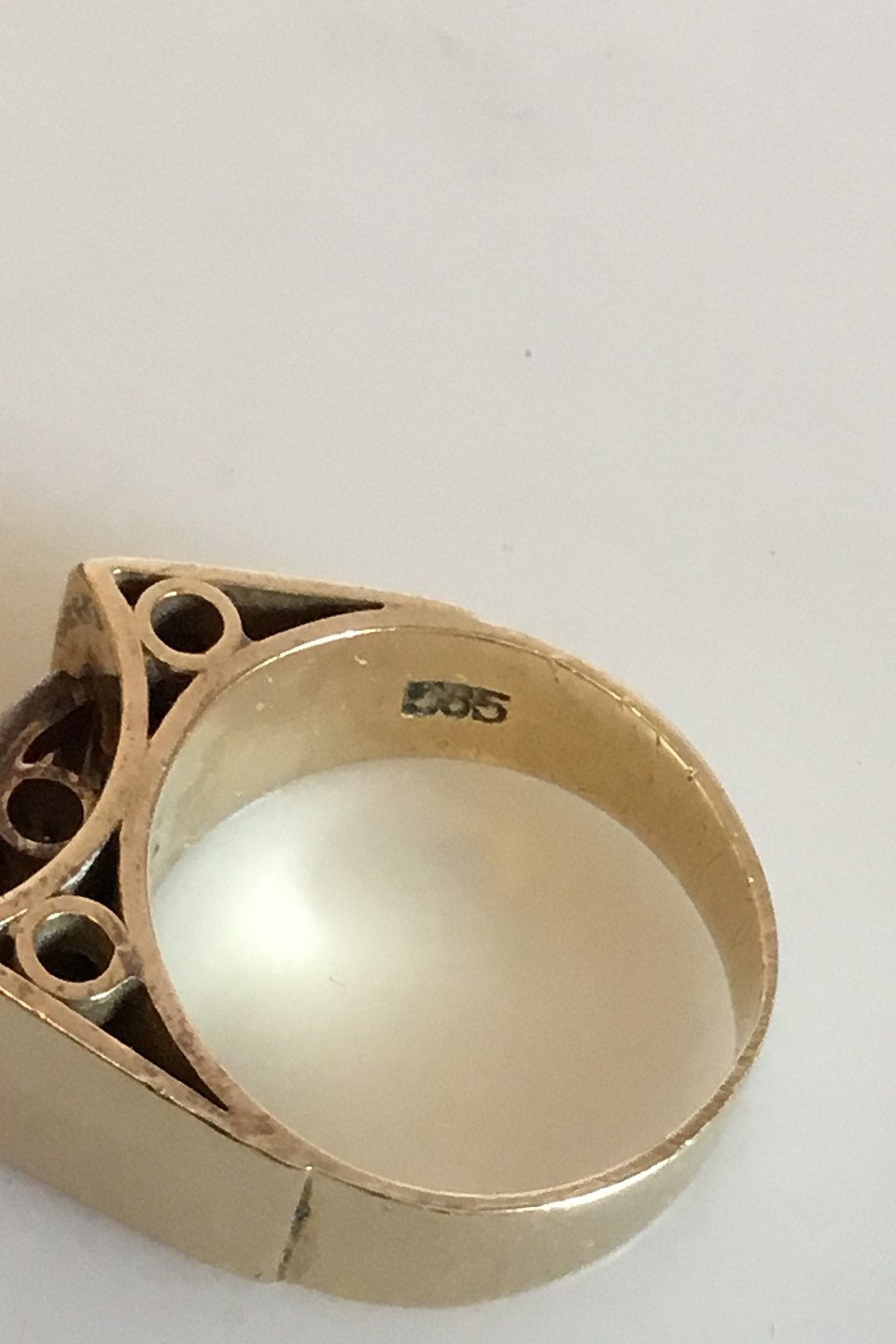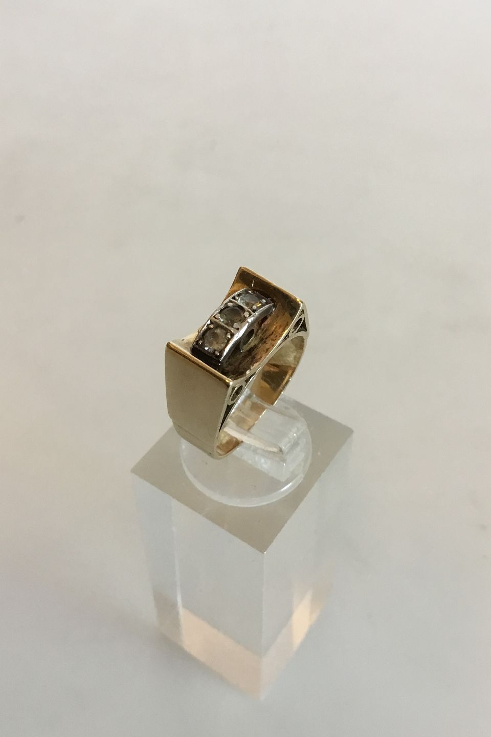 Guldring med tre Brillanter. 14 K. Ringstørrelse 48. Vejer 5.41 gram.Varen findes ikke fysisk i butikken.