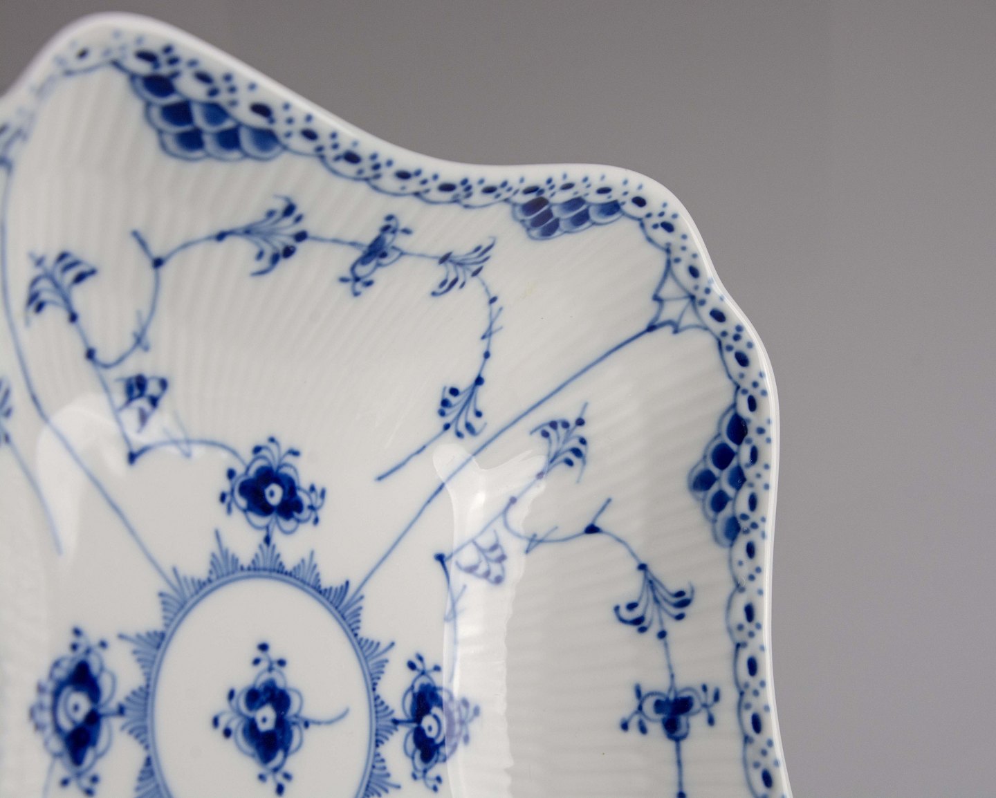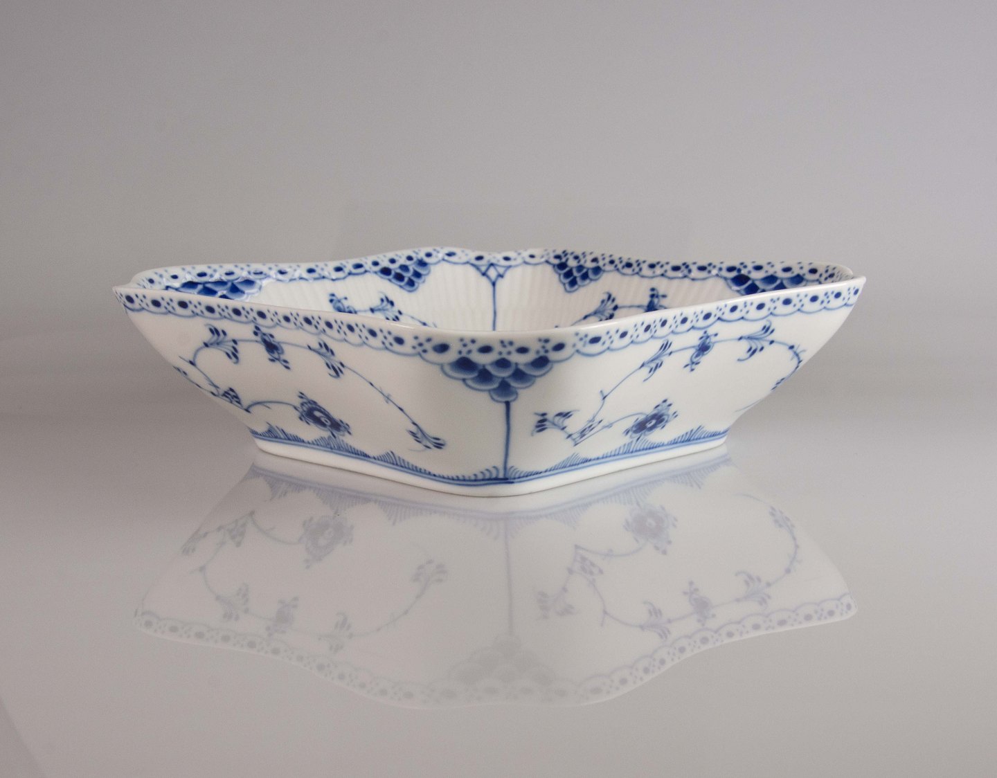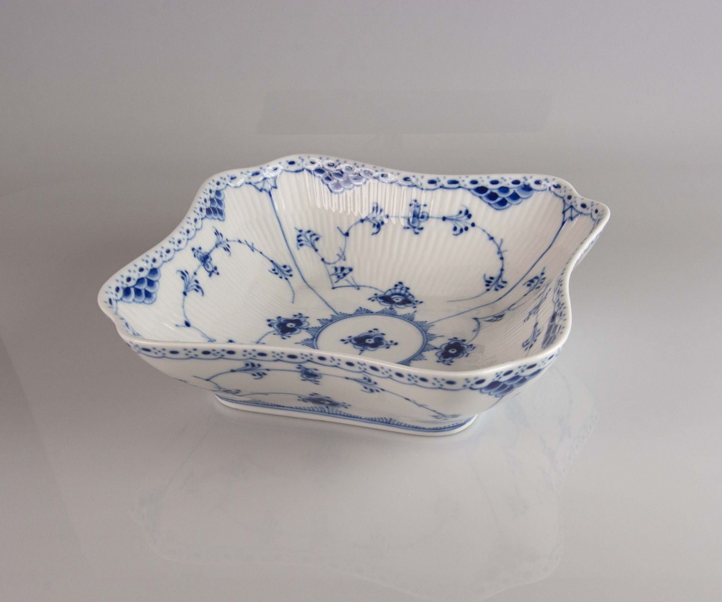 Kartoffelskål i porcelæn i serien musselmalet halvblonde nr. 1/708Produceret af Royal Copenhagen