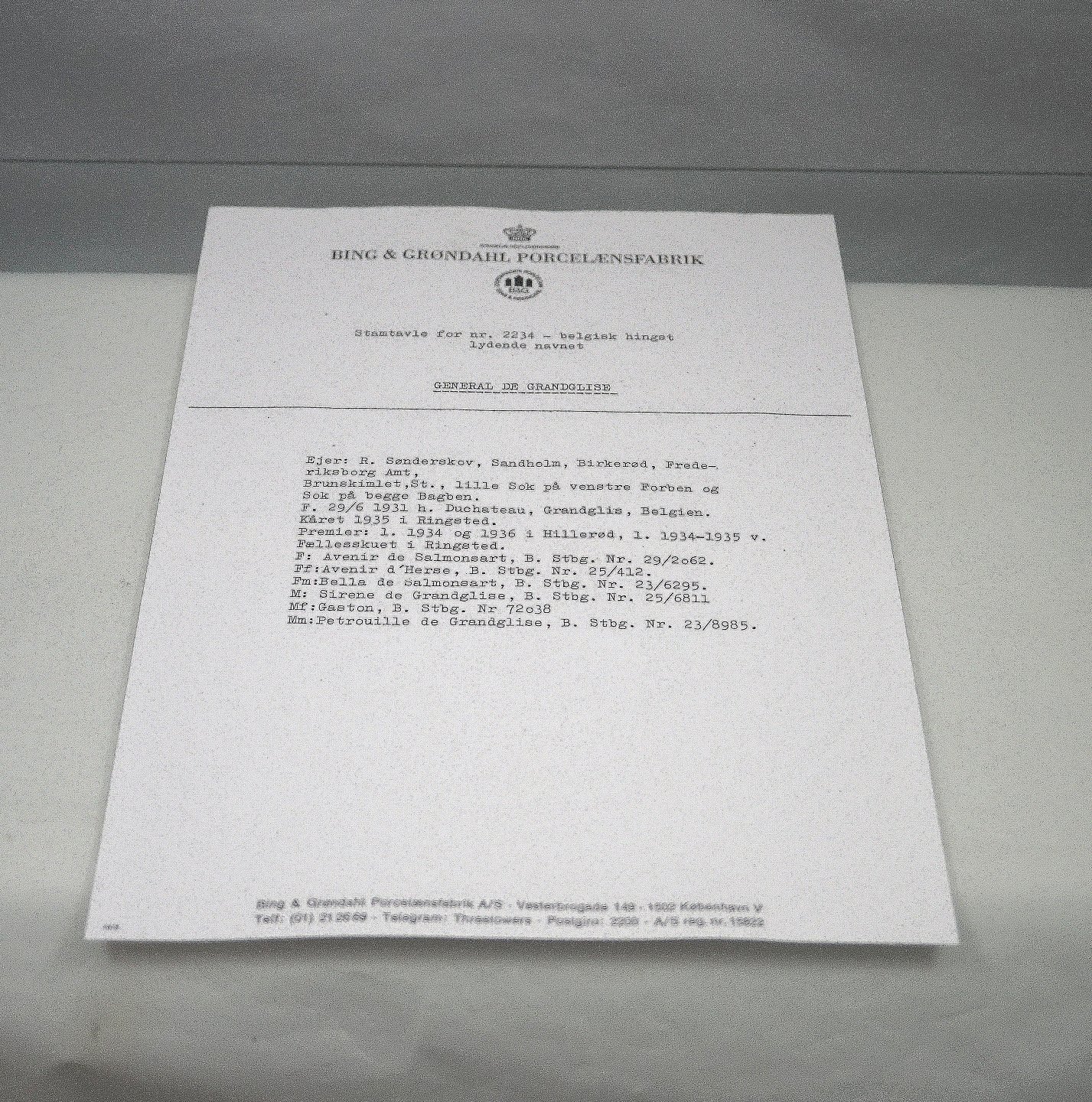 Bing & Grøndahl, hingst nr 2234. Flot belgisk bryggerhingst, med kopi af original stamtavle. Hingsten er 1. sorteringDesign Svend Jespersen
