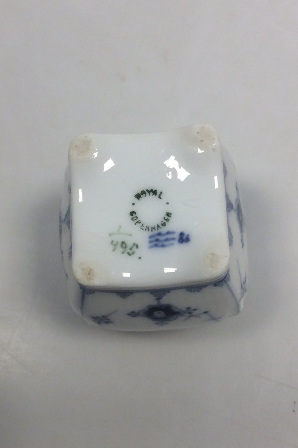 Royal Copenhagen Musselmalet Riflet Bordkortholder og Vase No. 495.Måler 6 cm / 2,36 in. høj 1. Sortering