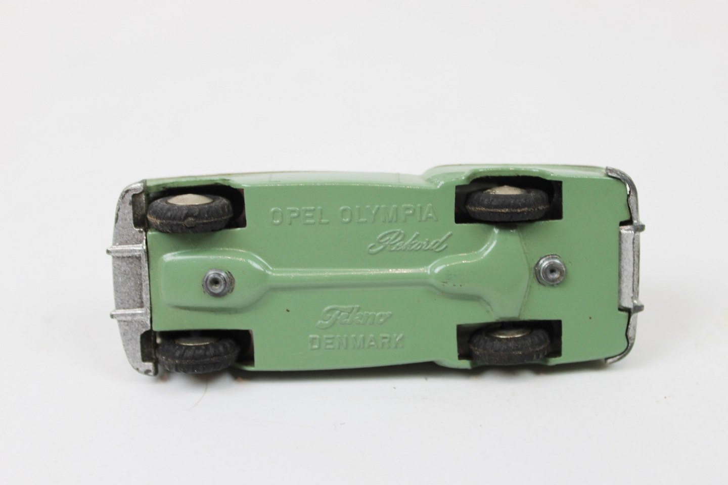 Modelbil, Opel Olympia Rekord, i lysegrøn og af Tekno Danmark. Bilen er i flot brugt stand og fra midten af 1950erne.2 x 8 x 3 cm.