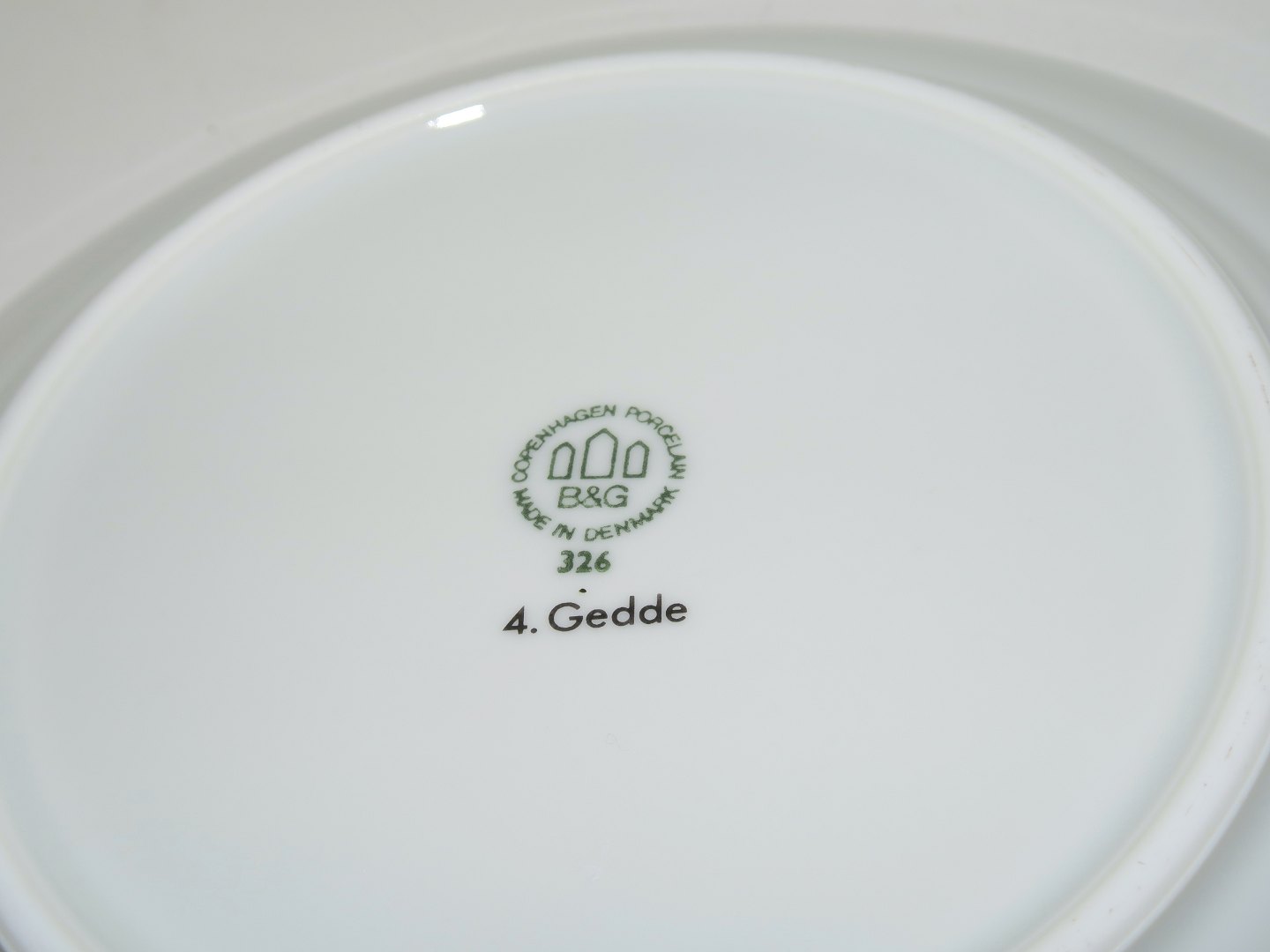 Bing & Grøndahl Måge med guldkant, fisketallerken med motiv nummer 4: Gedde.Dekorationsnummer 26 eller nyere nummer 326.