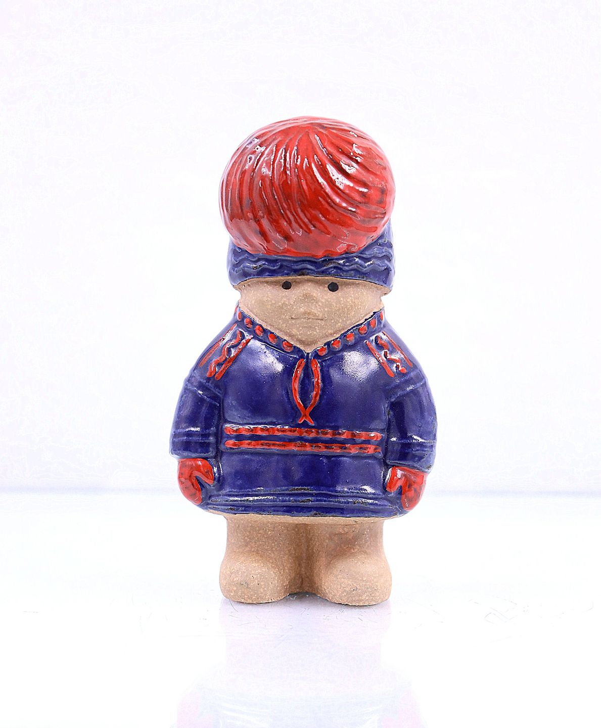 Lisa Larson. Stående etnisk dreng, Nils, fra serien "Alverdens børn". Serien Alverdens børn fra 1975 blev skabt på opfordring af UNICEF.Der er ingen brugsspor på figuren
