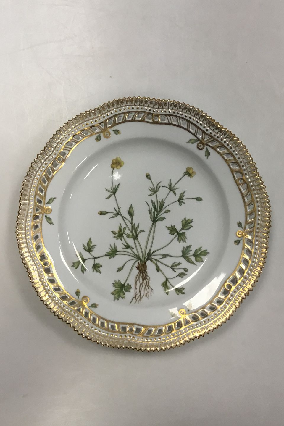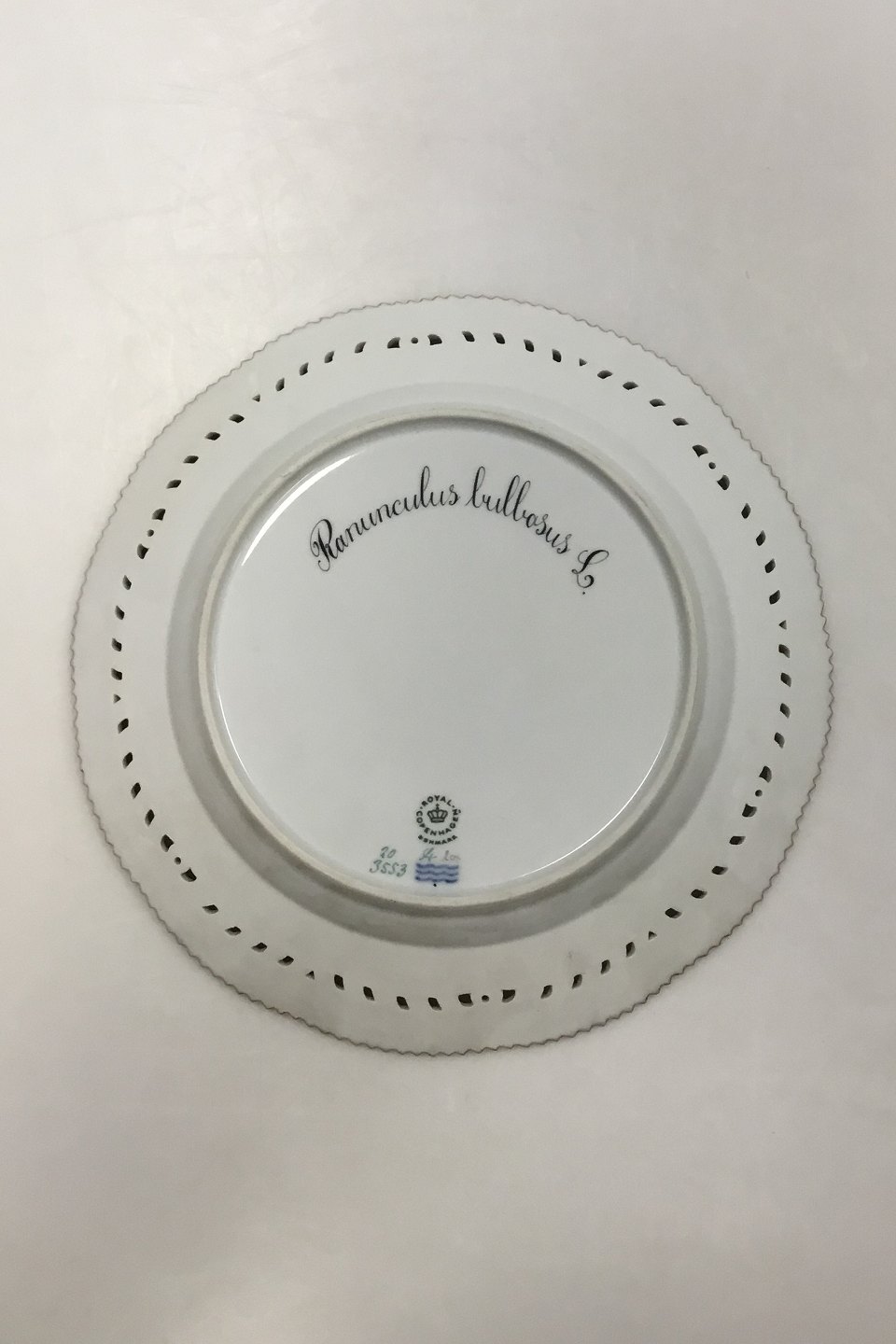Royal Copenhagen Flora Danica tallerken med gennembrudt kant No 20/3553. Latinsk navn: Ranunculus bulbosus L. Måler 25,5 cm(10 3/64 in.)Lager: 1