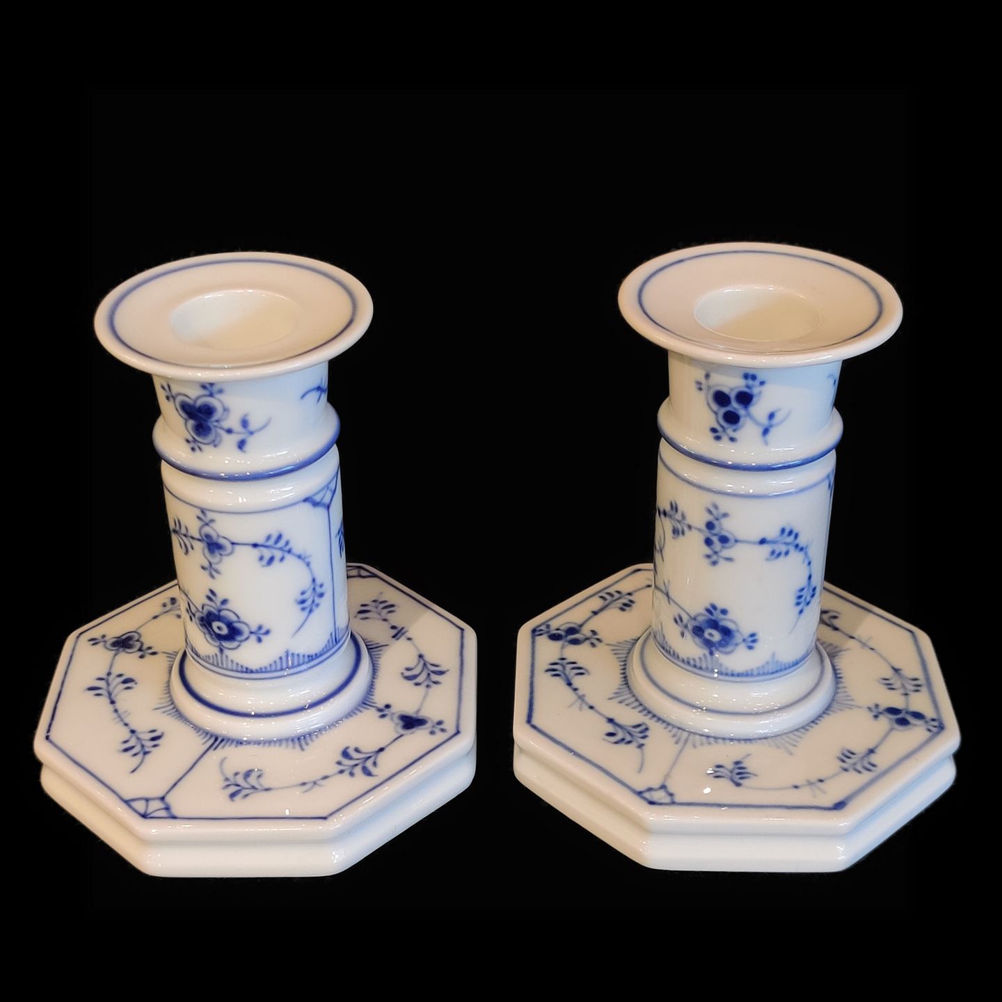 Royal Copenhagen, musselmalet riflet; Par lysestager i porcelæn #3303