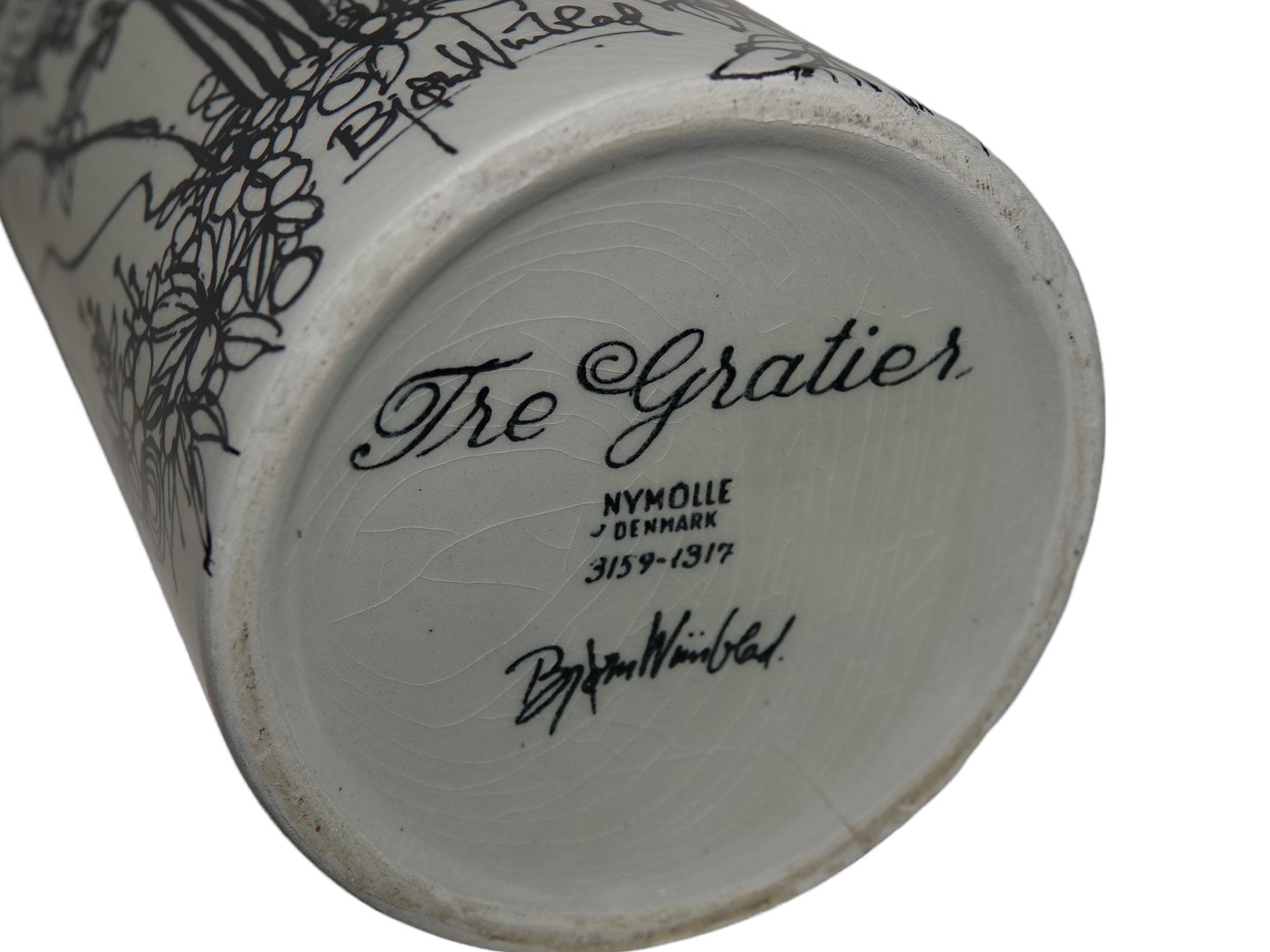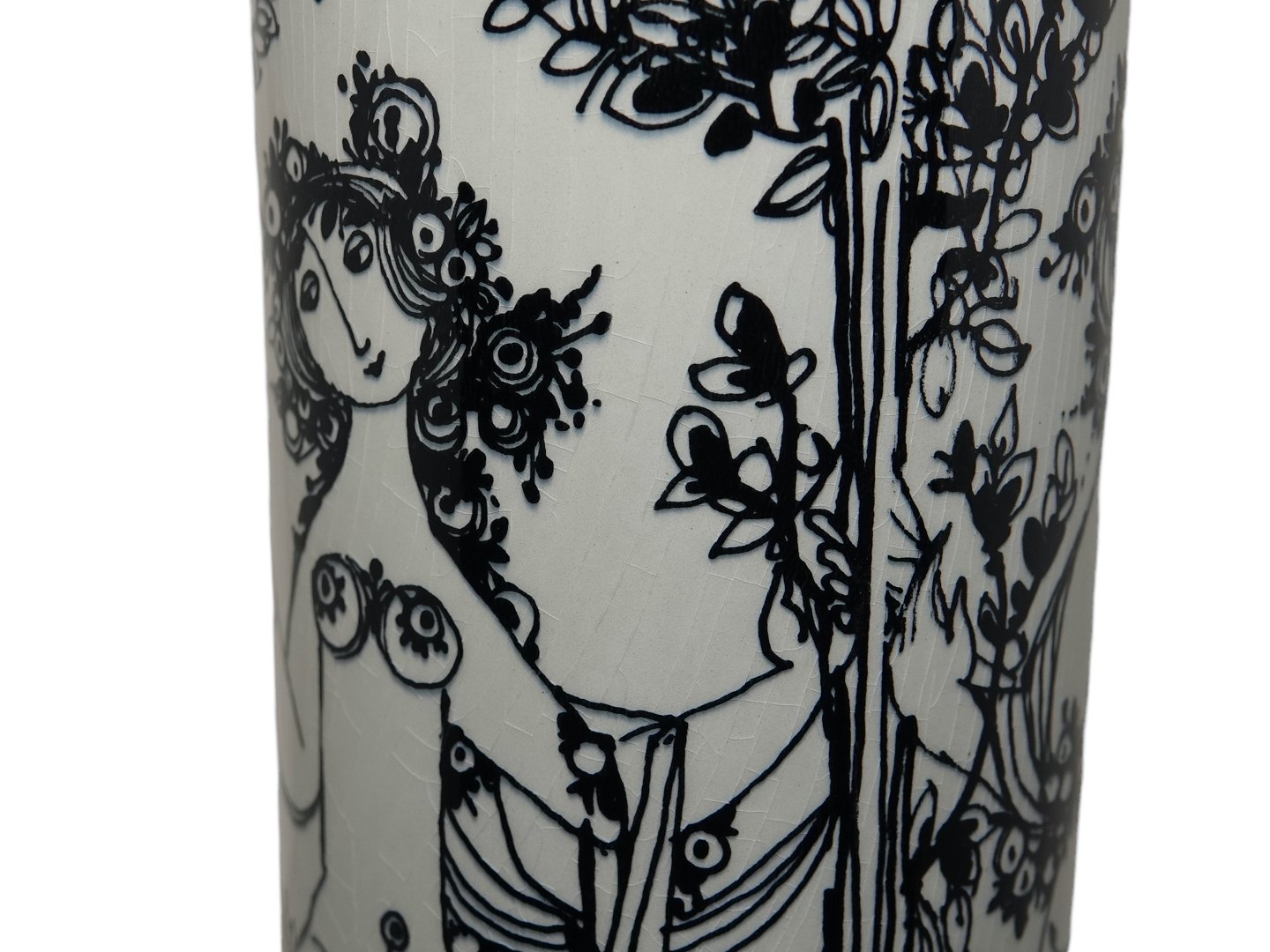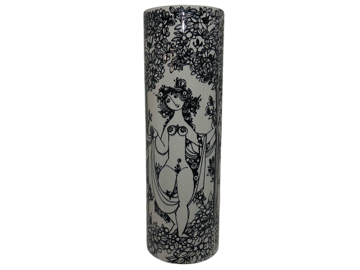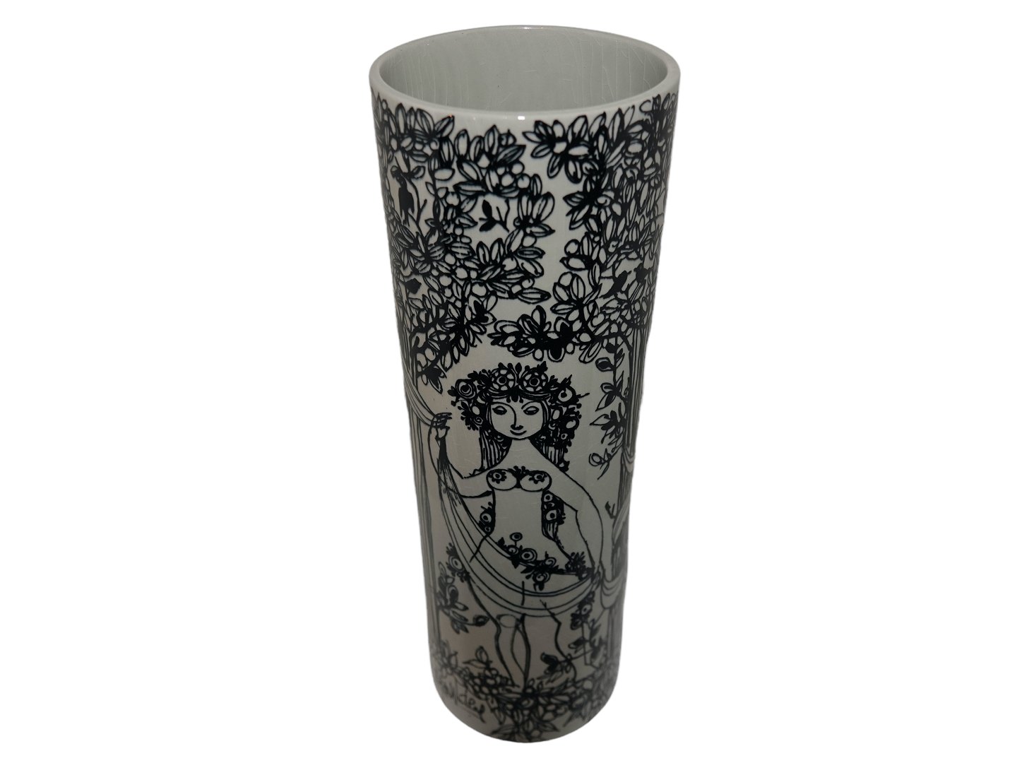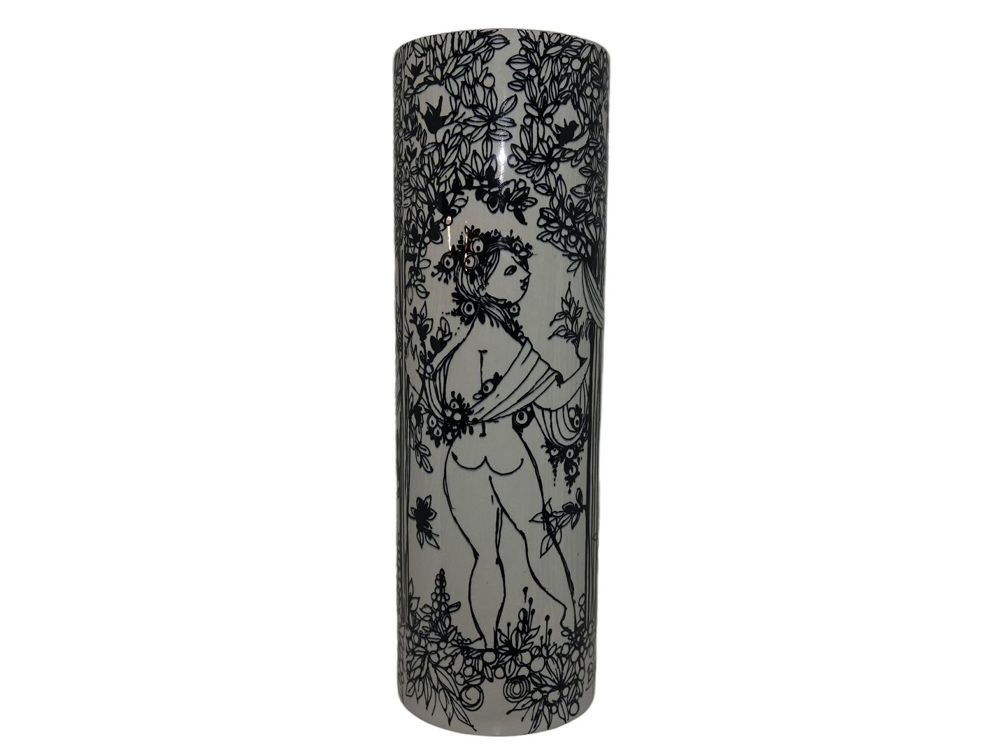 Bjørn Wiinblad keramik udført hos Nymølle, høj vase dekoreret med de tre gratier.