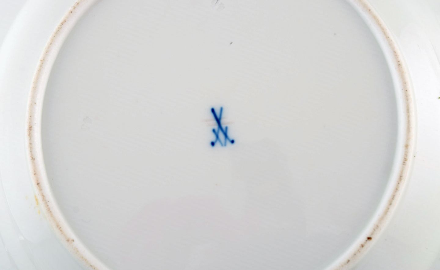 Antik og sjælden Meissen porcelænstallerken med håndmalede fugle, insekter og gulddekoration. 1800-tallet.Beschreibung: