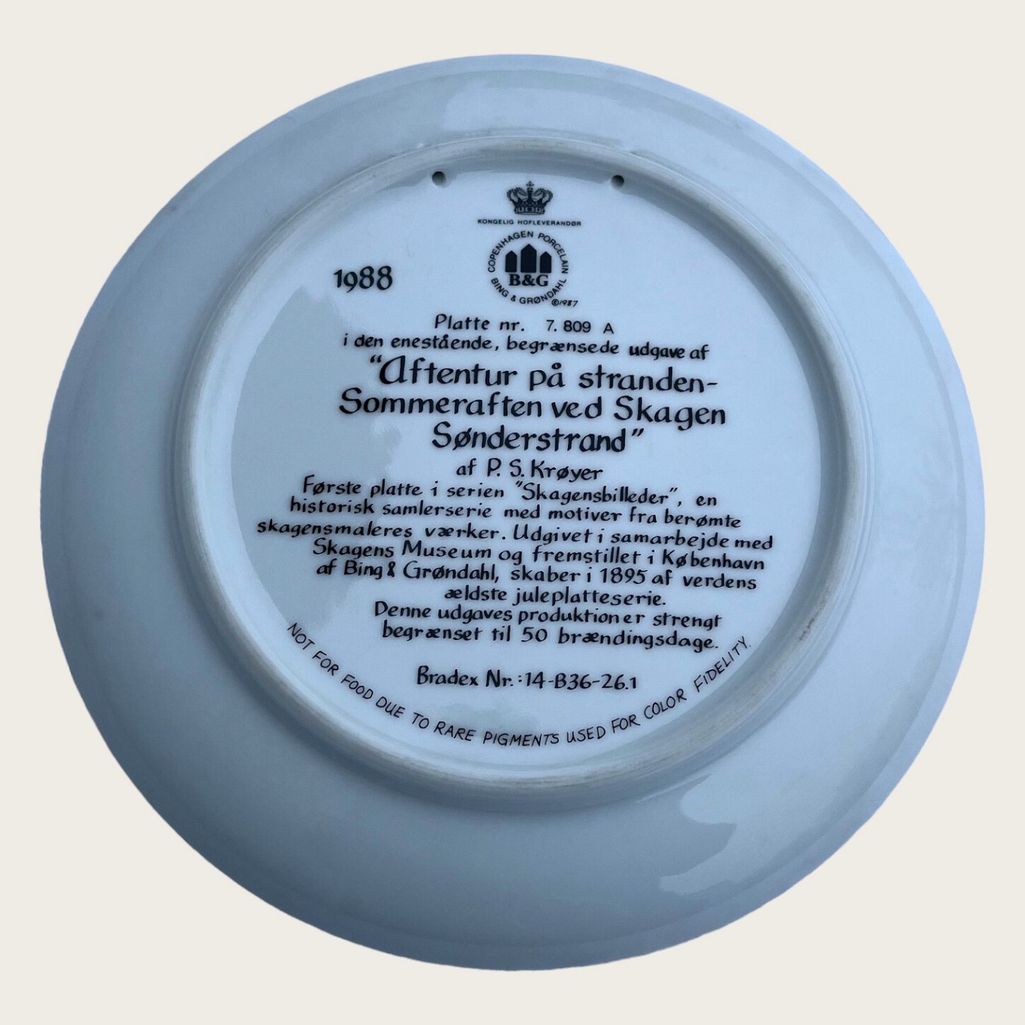 Bing & Grøndahl, Skagensmalerne, 1988, Tafelnr. 1, „Abendspaziergang am Strand“, P.S. Krøyer *Perfekter Zustand*