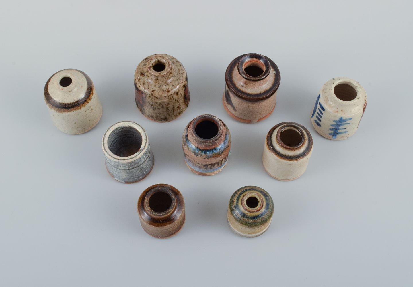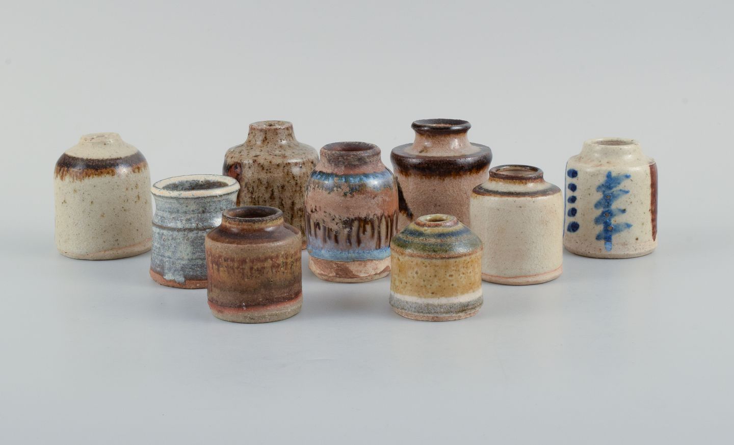 Niels Oluf 'Jeppe' Thorkelin-Eriksen (1926-1981) og Gunver Bilde Sørensen (1931-2018), Danmark. Samling på ni miniaturevaser i glaseret keramik. 1960/70'erne.I flot stand.
