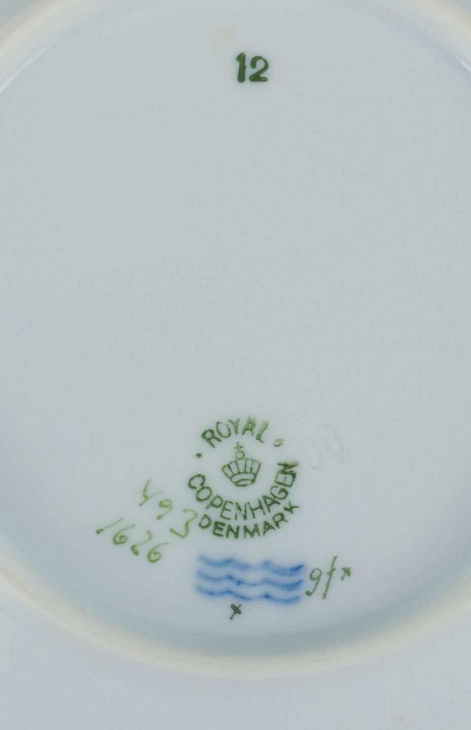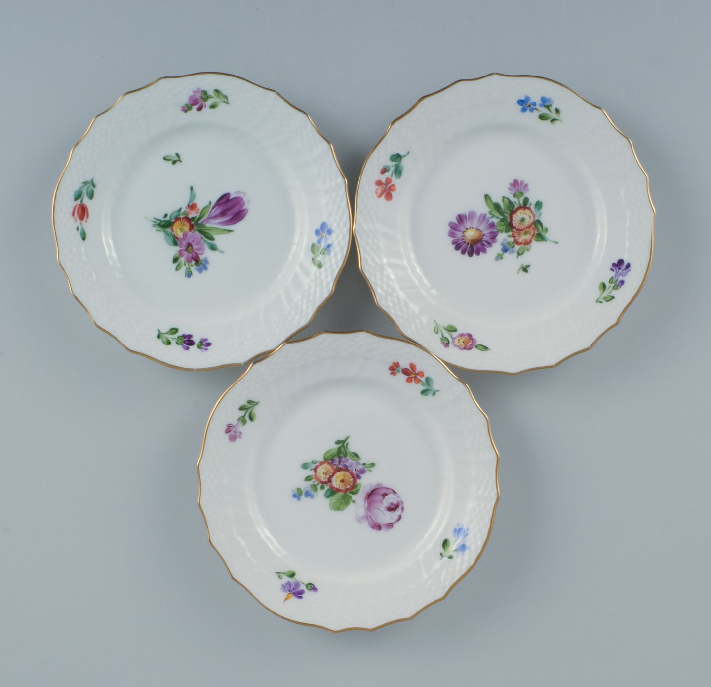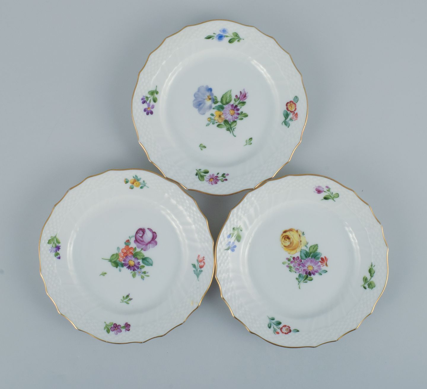 Royal Copenhagen, Let Saksisk Blomst. Tolv tallerkner af porcelæn, dekoreret i farver og guld med blomster.