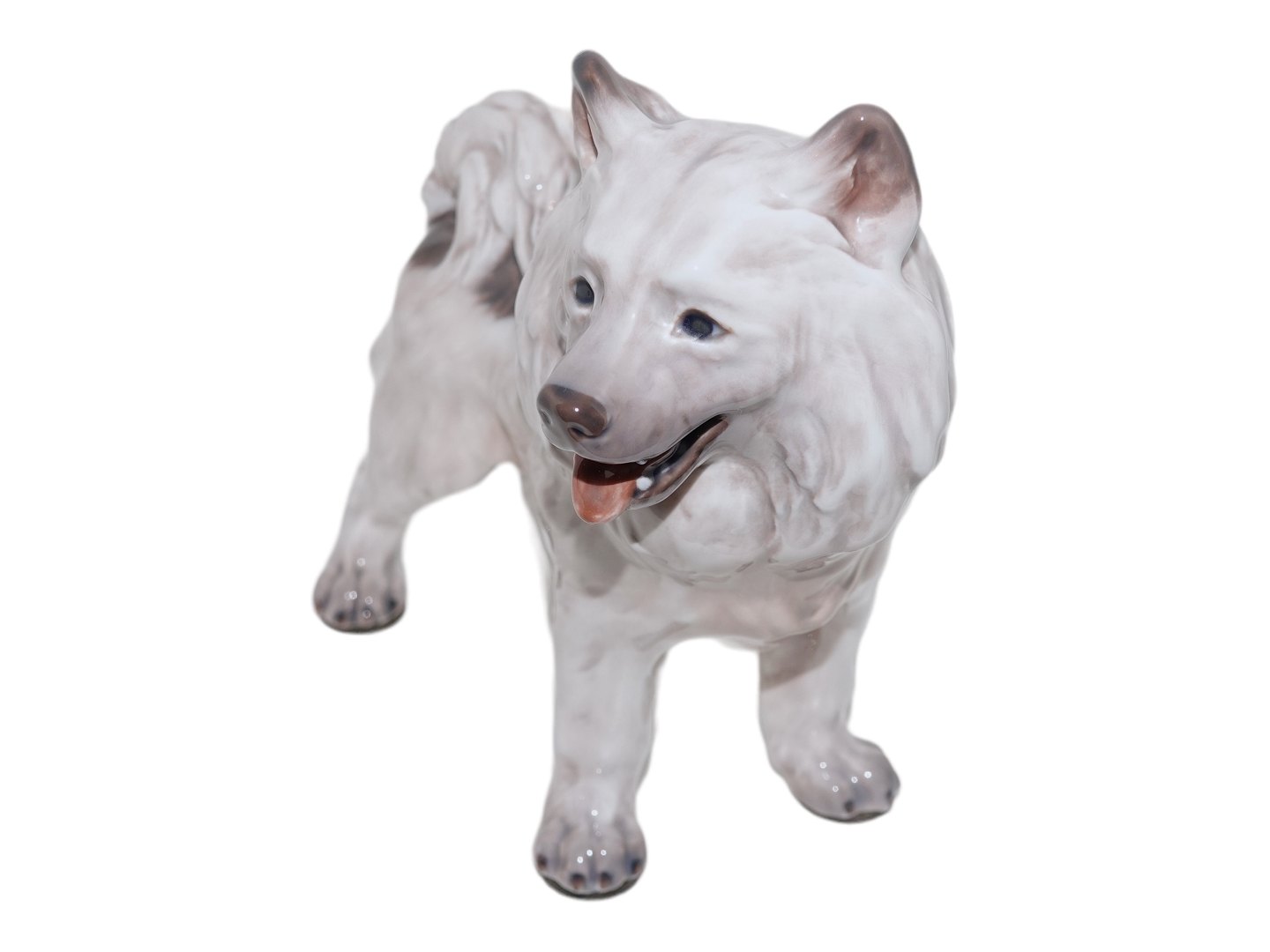 Dahl Jensen figur, slædehund fra Grønland.Af fabriksmærket ses det, at denne er produceret mellem 1928 og 1985.