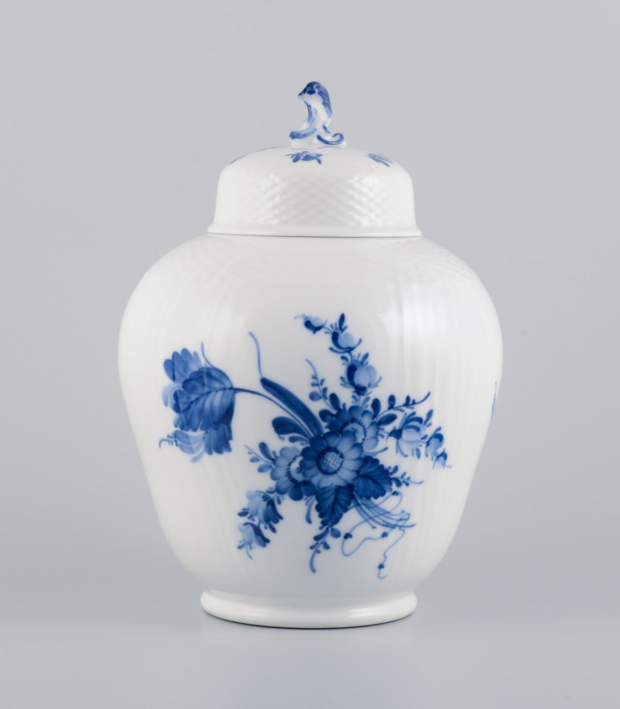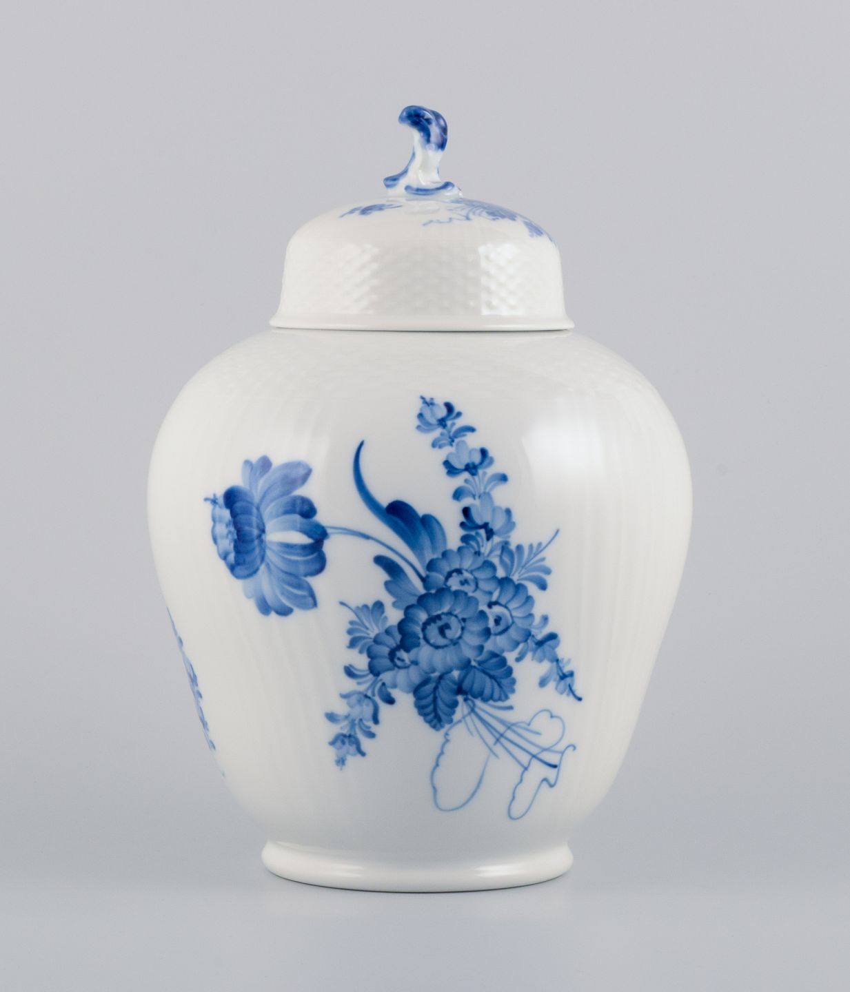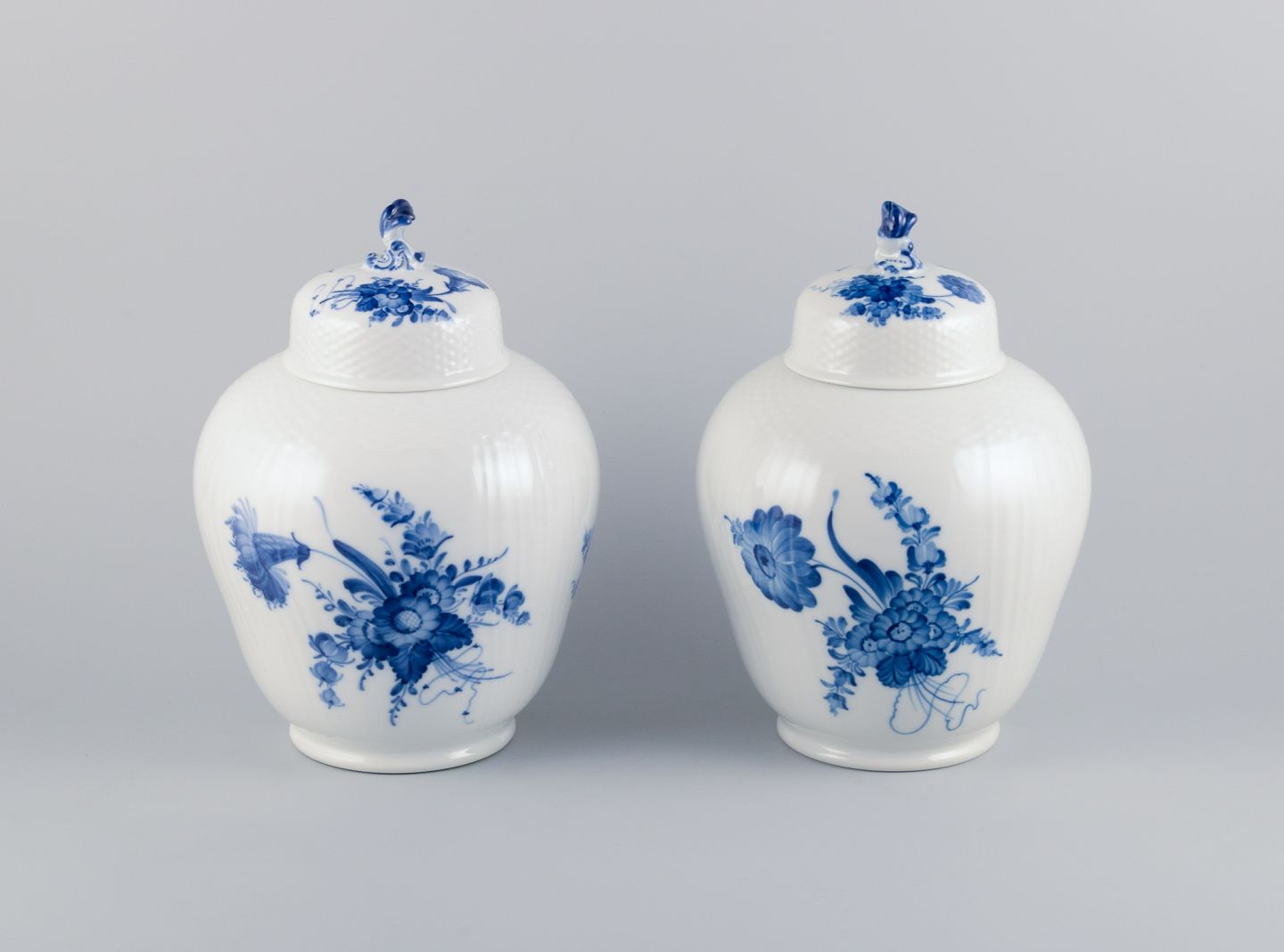Royal Copenhagen Blå Blomst Svejfet, et par lågkrukker i porcelæn.Modelnummer 10/1791
