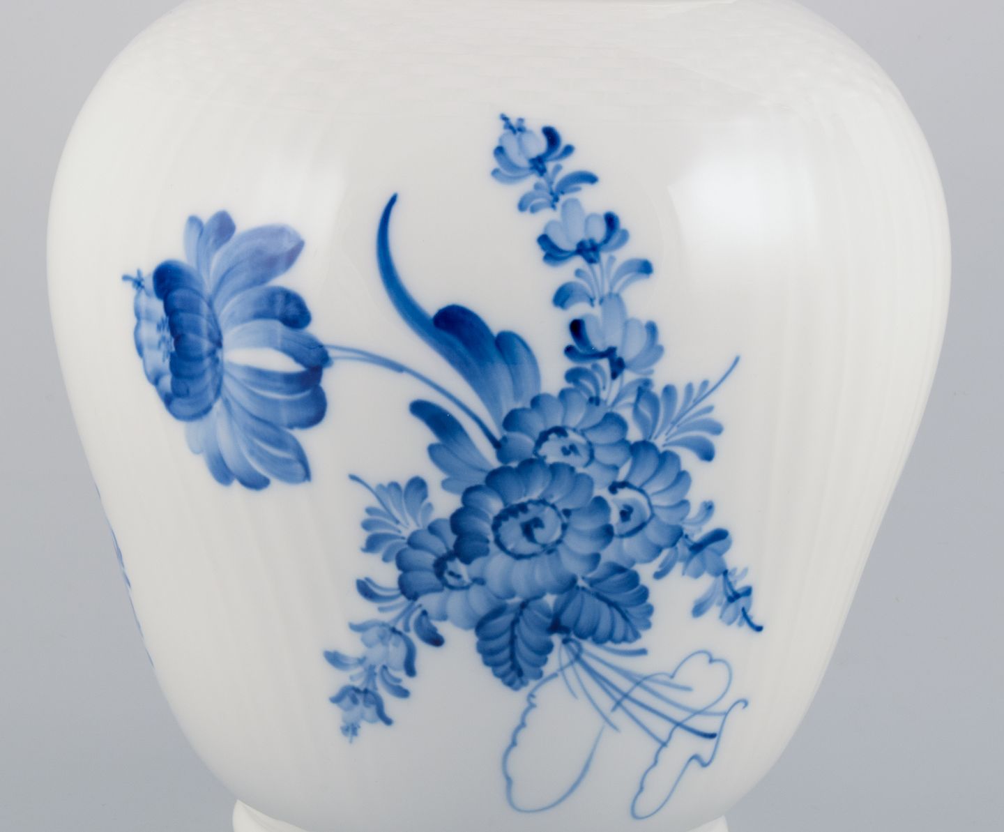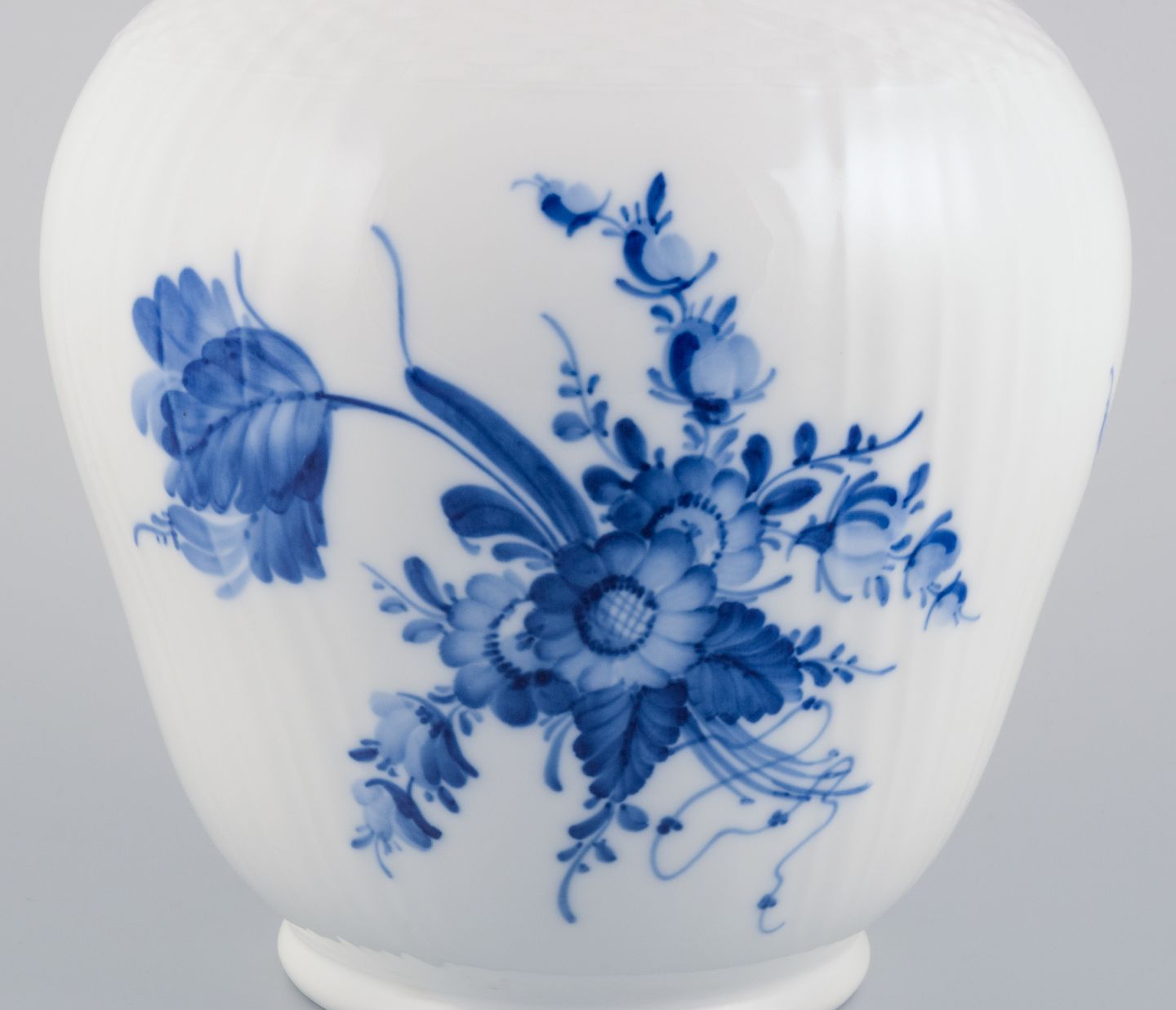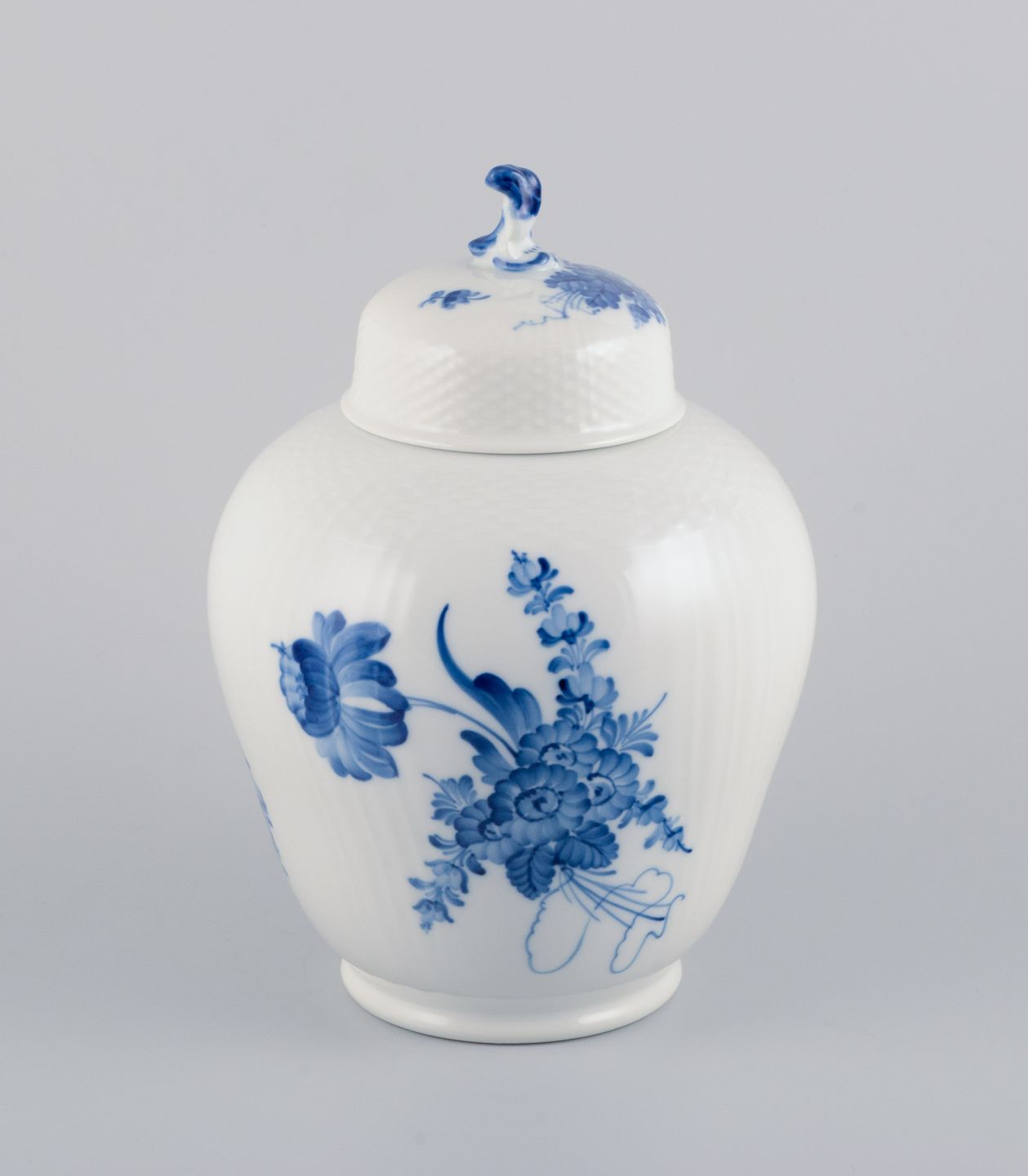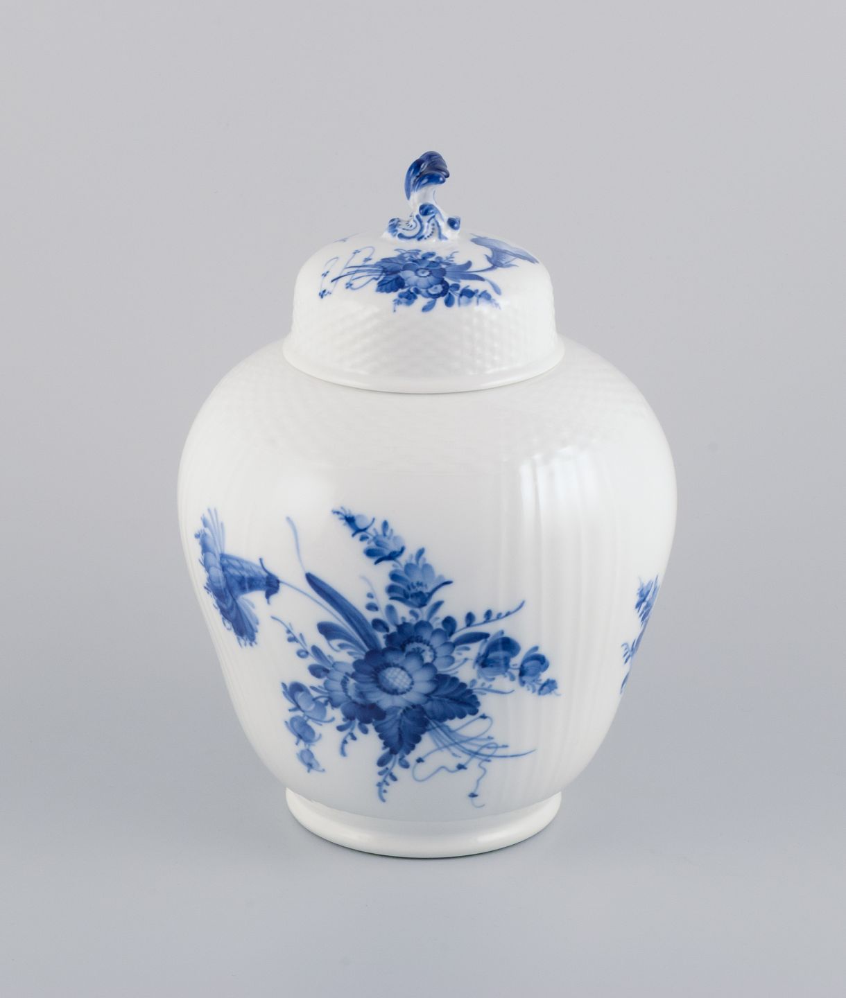 Royal Copenhagen Blå Blomst Svejfet, et par lågkrukker i porcelæn.Modelnummer 10/1791