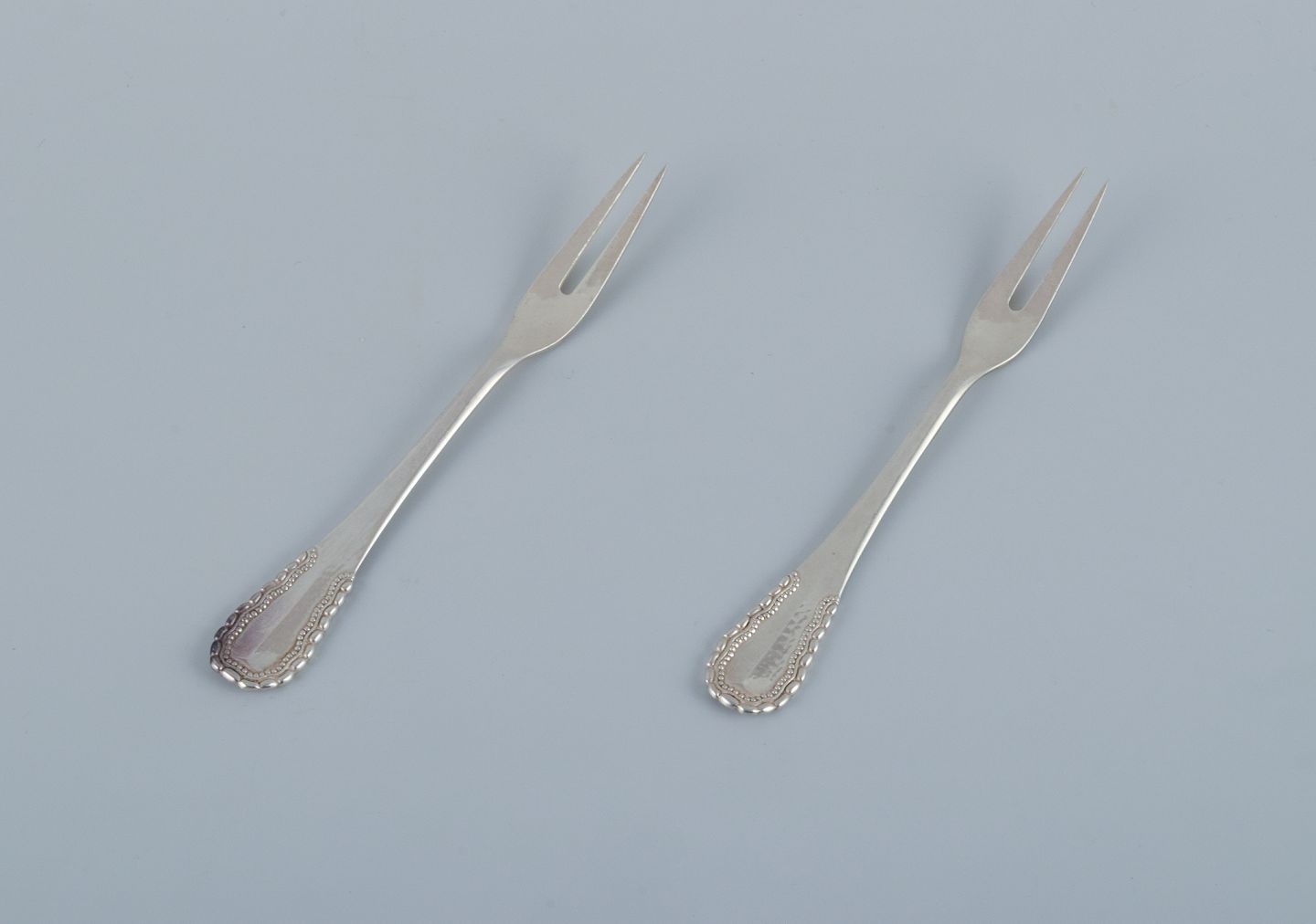 Georg Jensen, Nordisk, to pålægsgafler/sildegafler i tretårnet sølv.