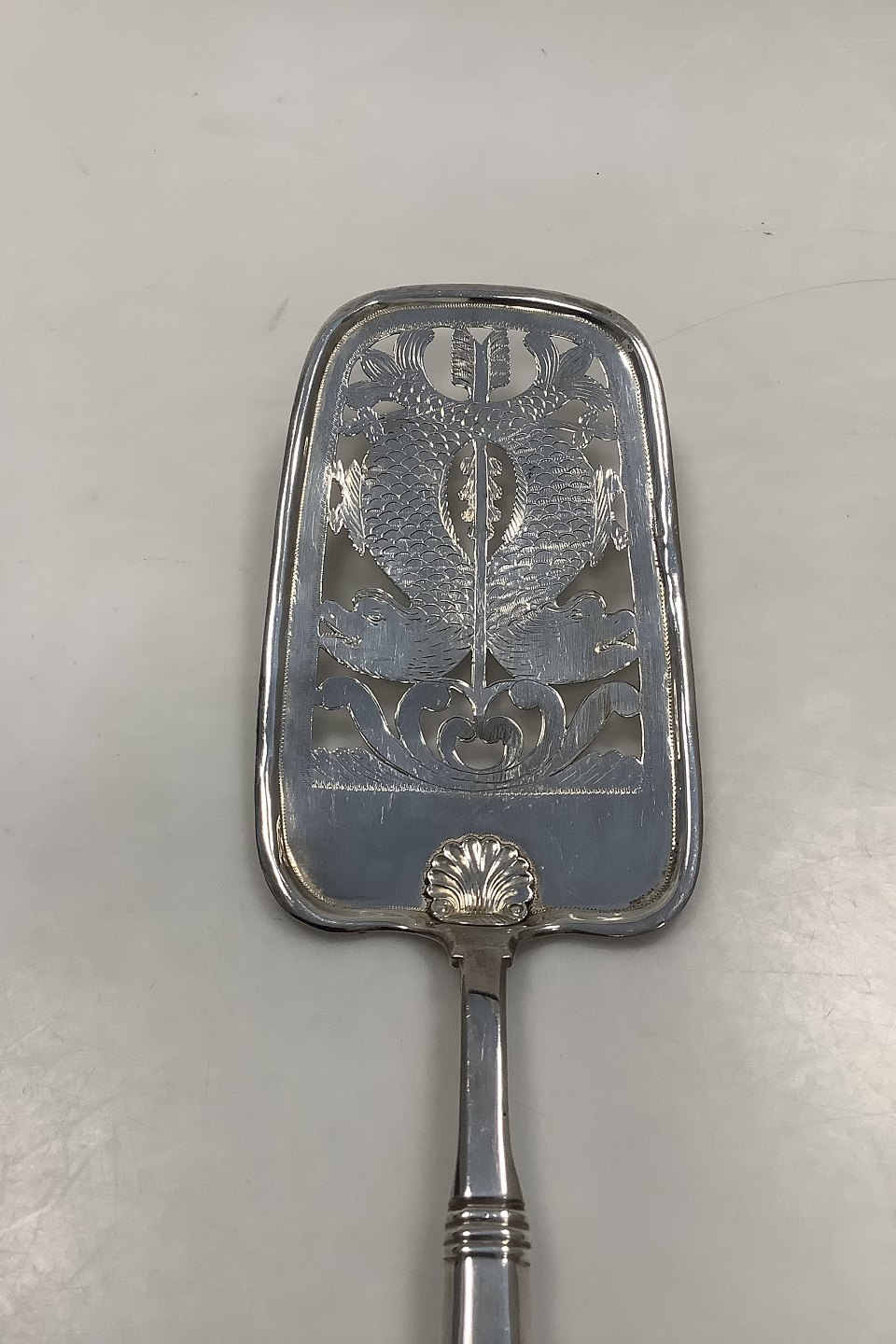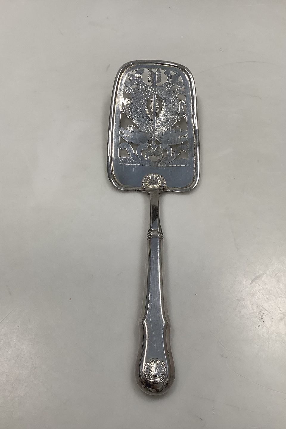 Dansk Sølv Stor Fiskespade i Musling fra Lamotte i 1895Måler 29cm / 11.42 inch