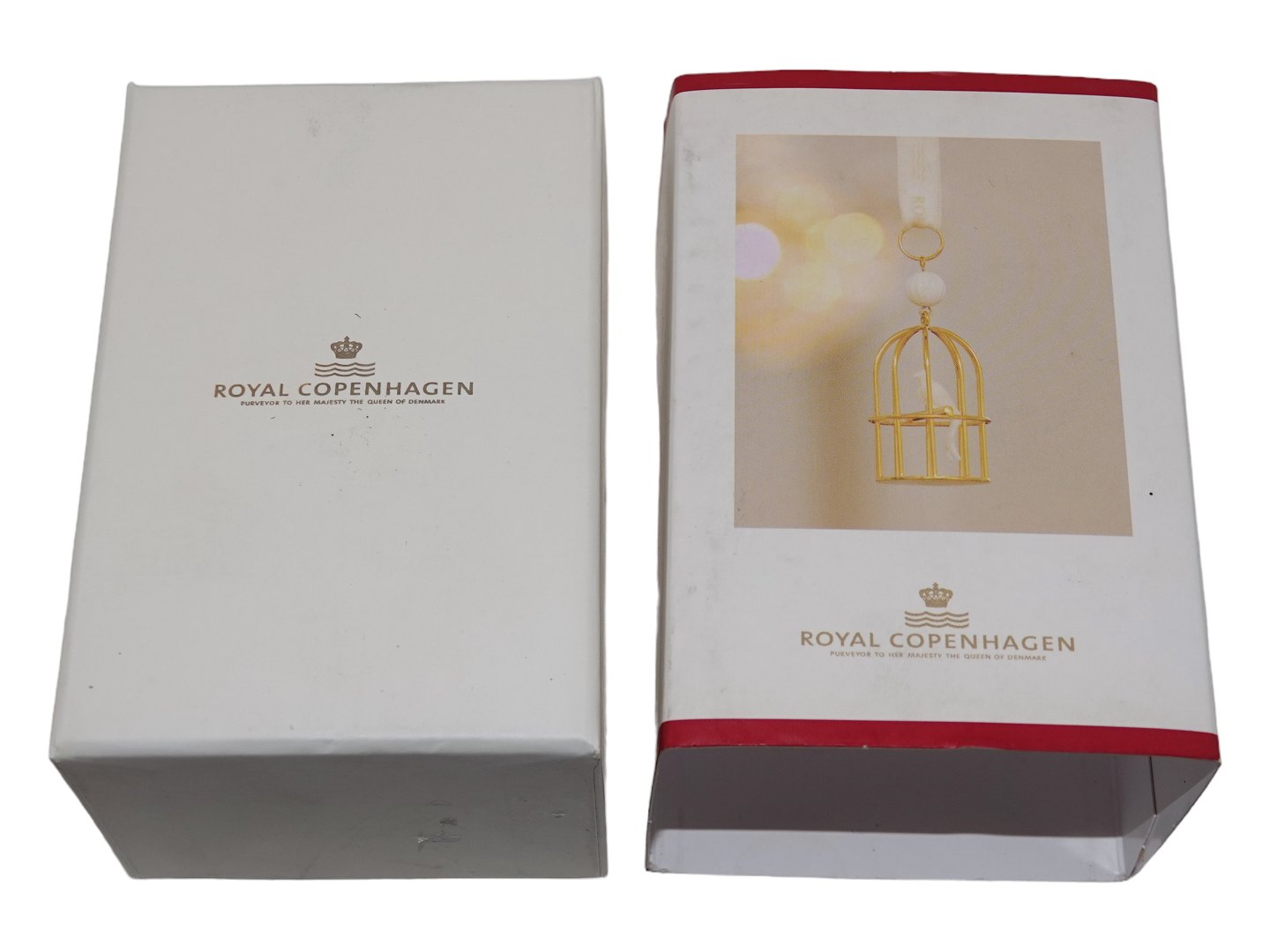 Royal Copenhagen Julepynt, fugl i bur.Højde 6 cm.